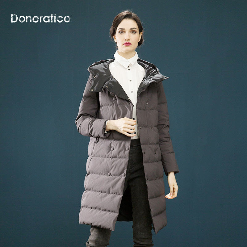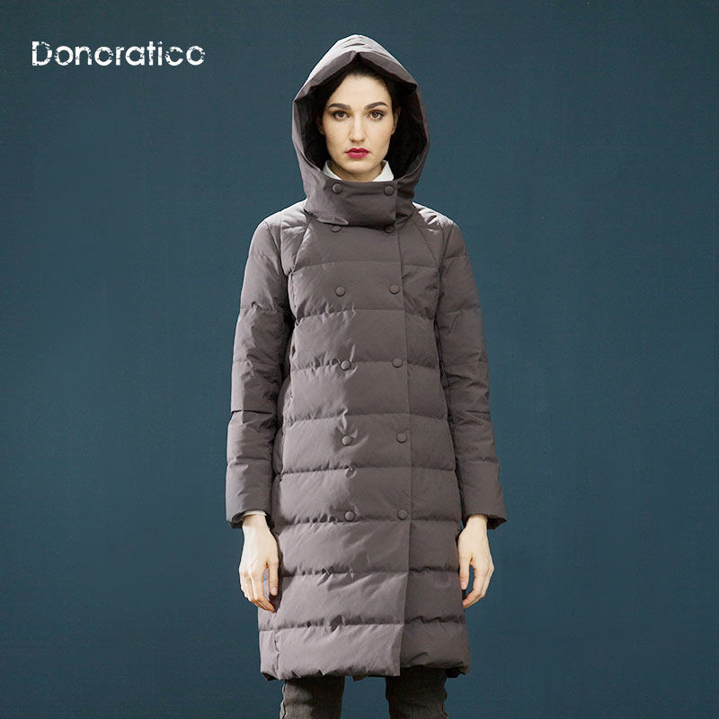 Модная длинная куртка с пухом с капюшоном, средней длины