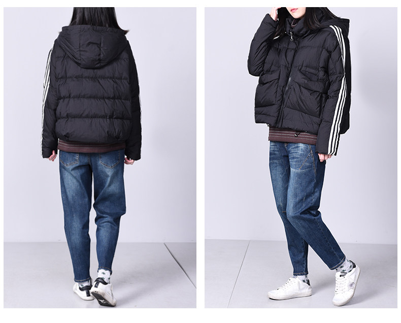Пуховик, бархатный вкладыш, джинсы с начесом с капюшоном, утиный пух, большой размер, свободный крой