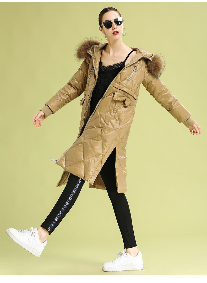 Легкий и тонкий бархатный длинный пуховик, утиный пух, средней длины