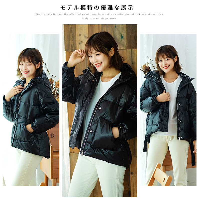 Ремень, короткий корсет, толстовка с капюшоном с пухом, зимний модный пуховик, удерживающая тепло куртка, 2019, в корейском стиле, свободный крой
