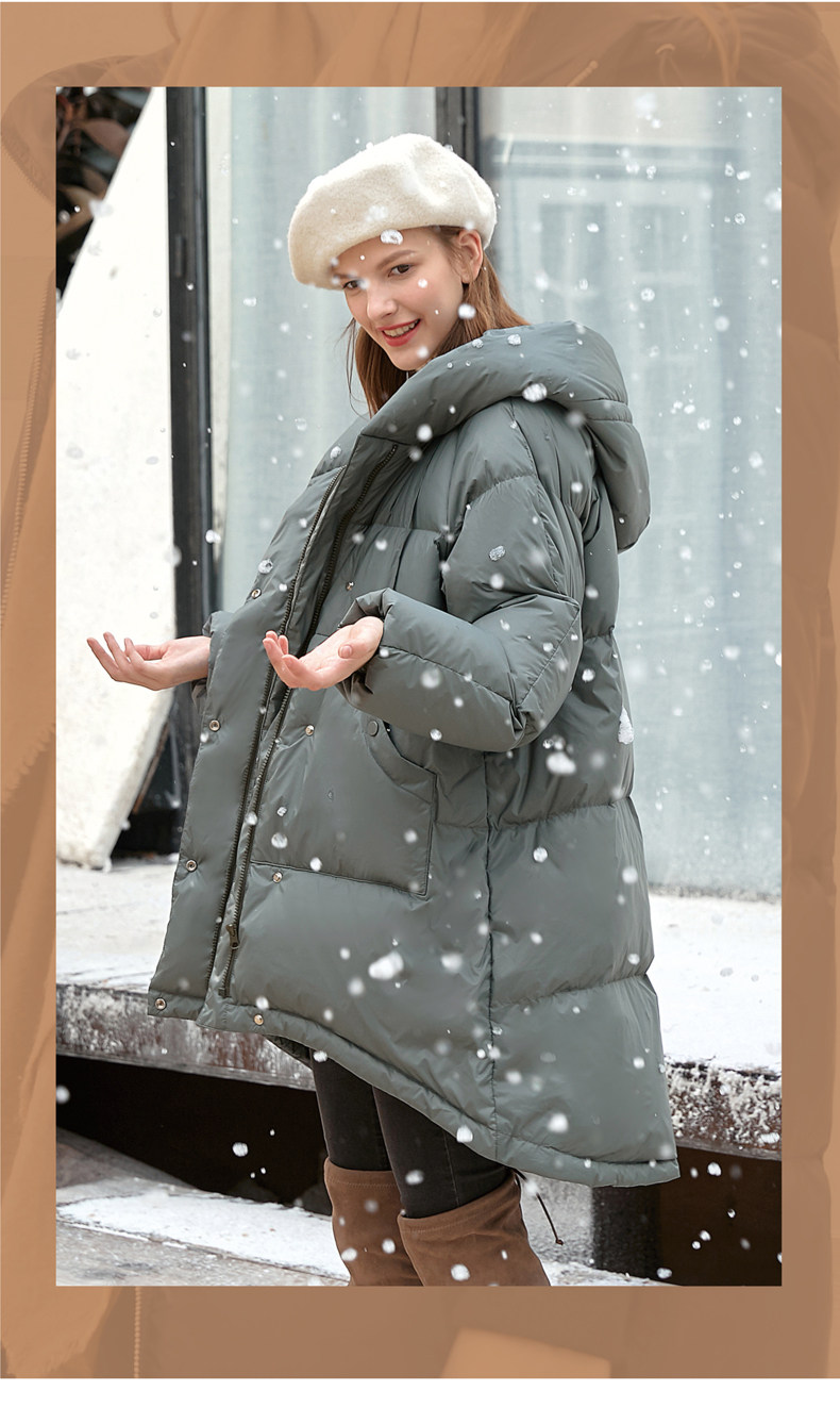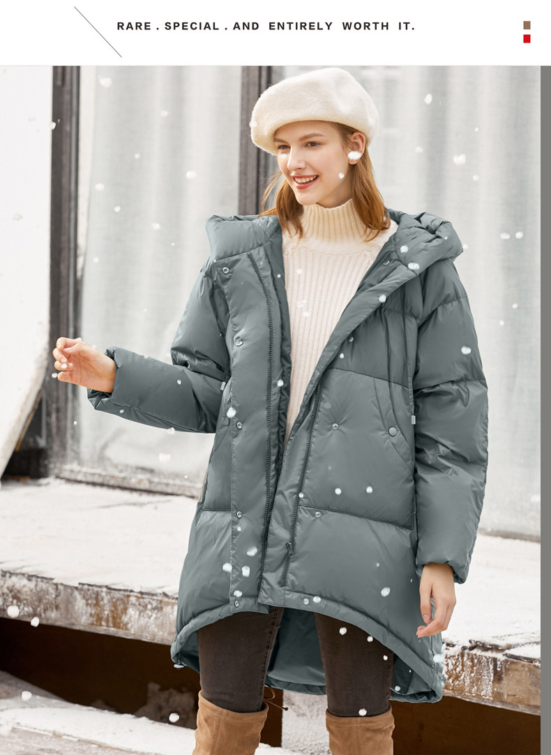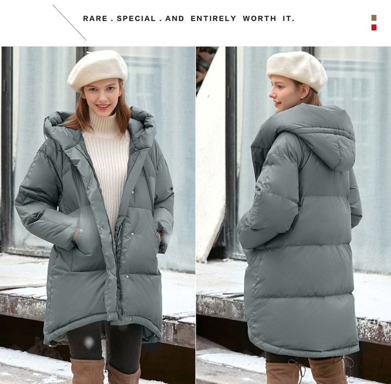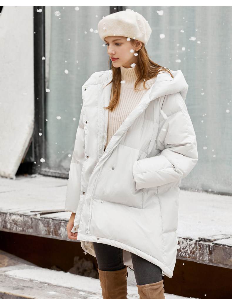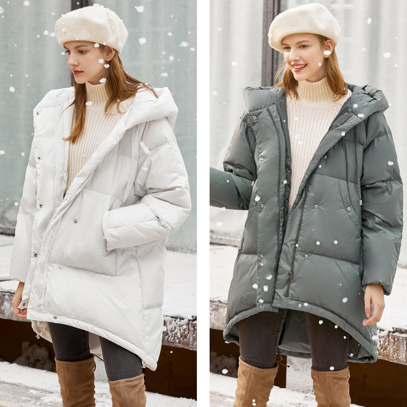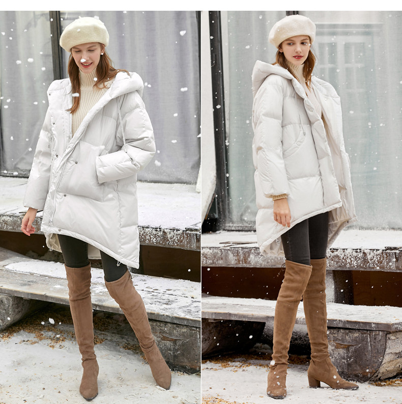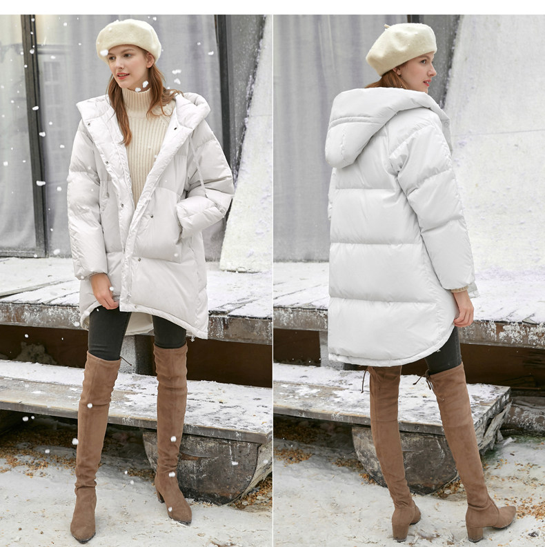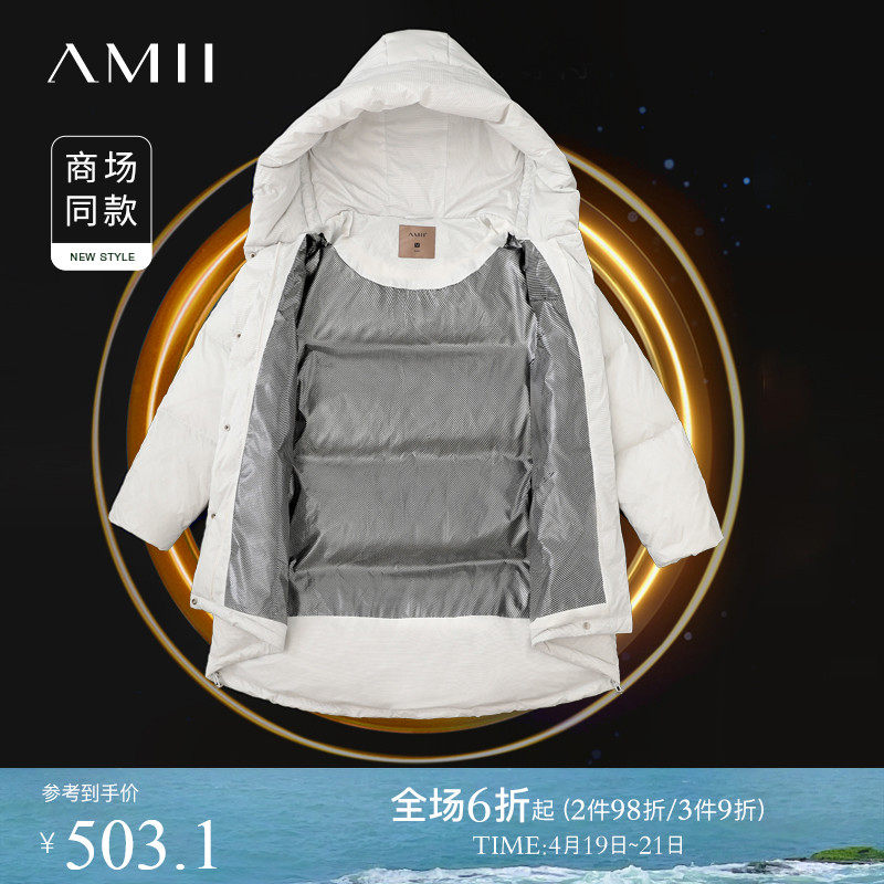 Amii Удерживающий тепло белый зимний пуховик, длинная толстовка с капюшоном, куртка, средней длины