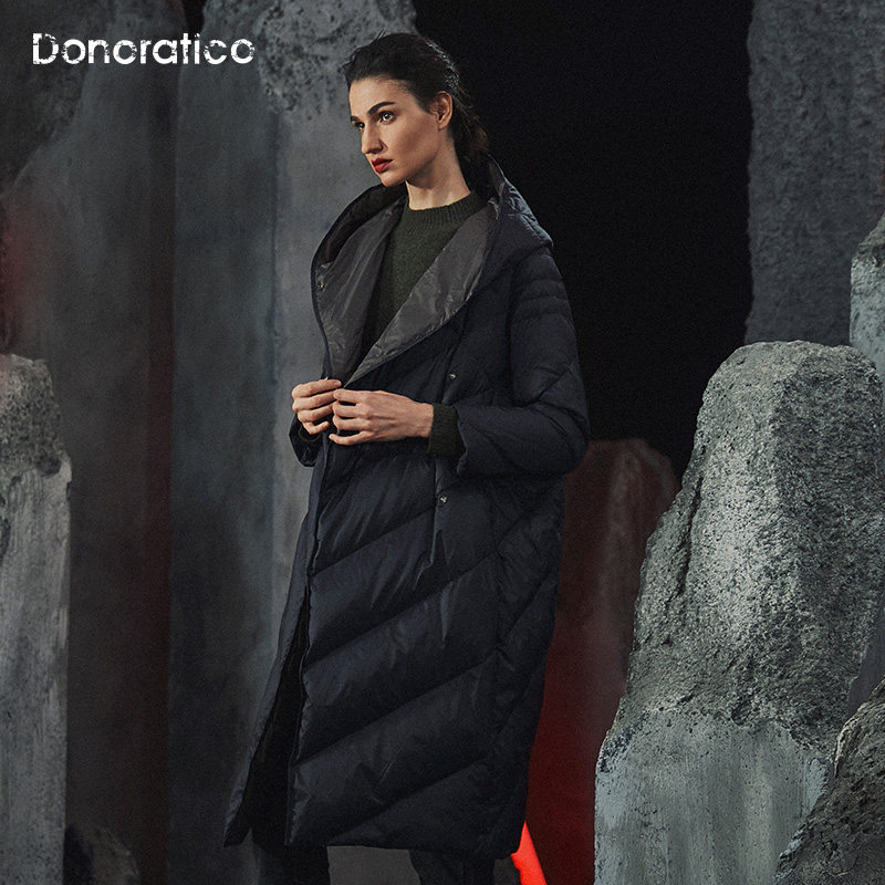 Зимний длинный удерживающий тепло пуховик с капюшоном, свободный крой