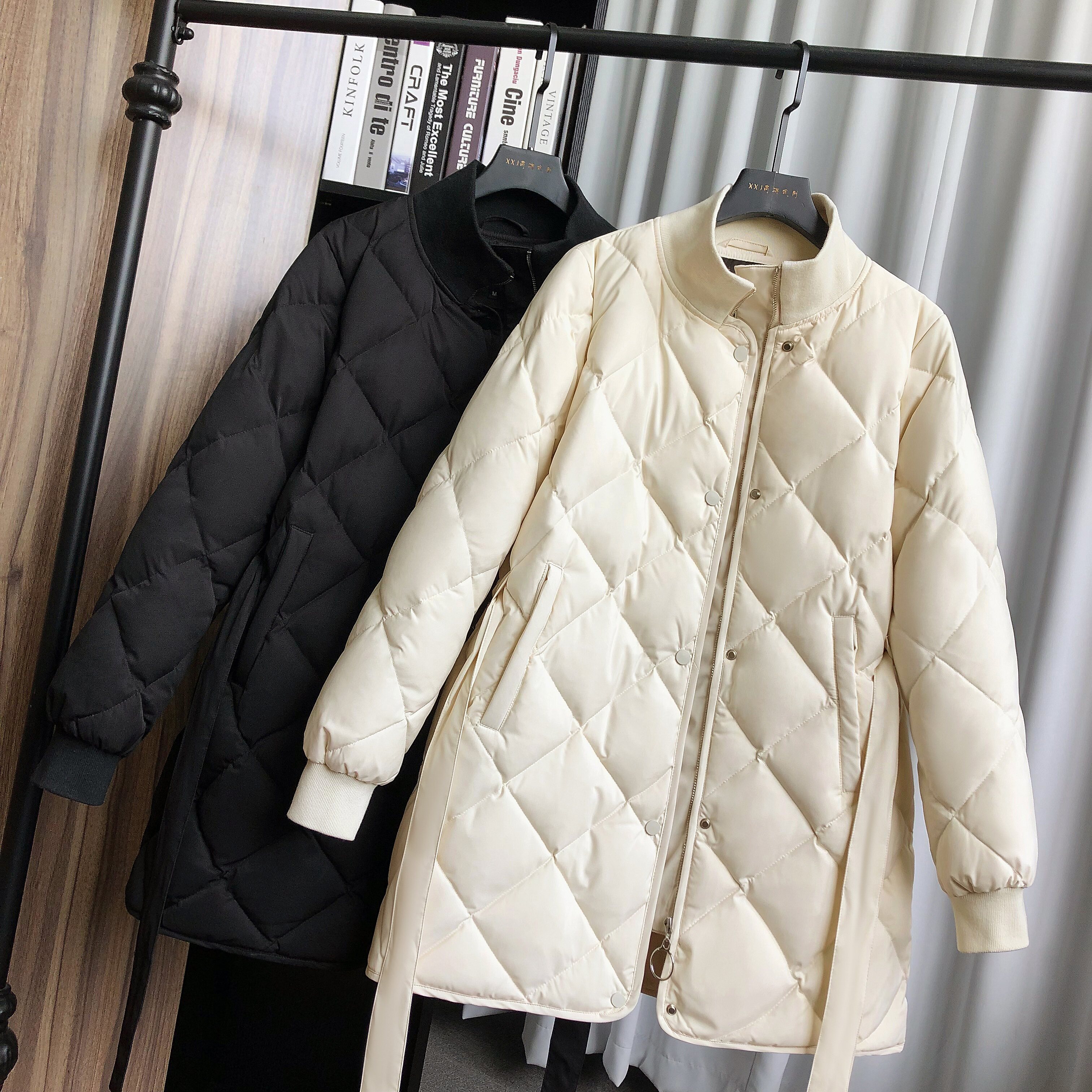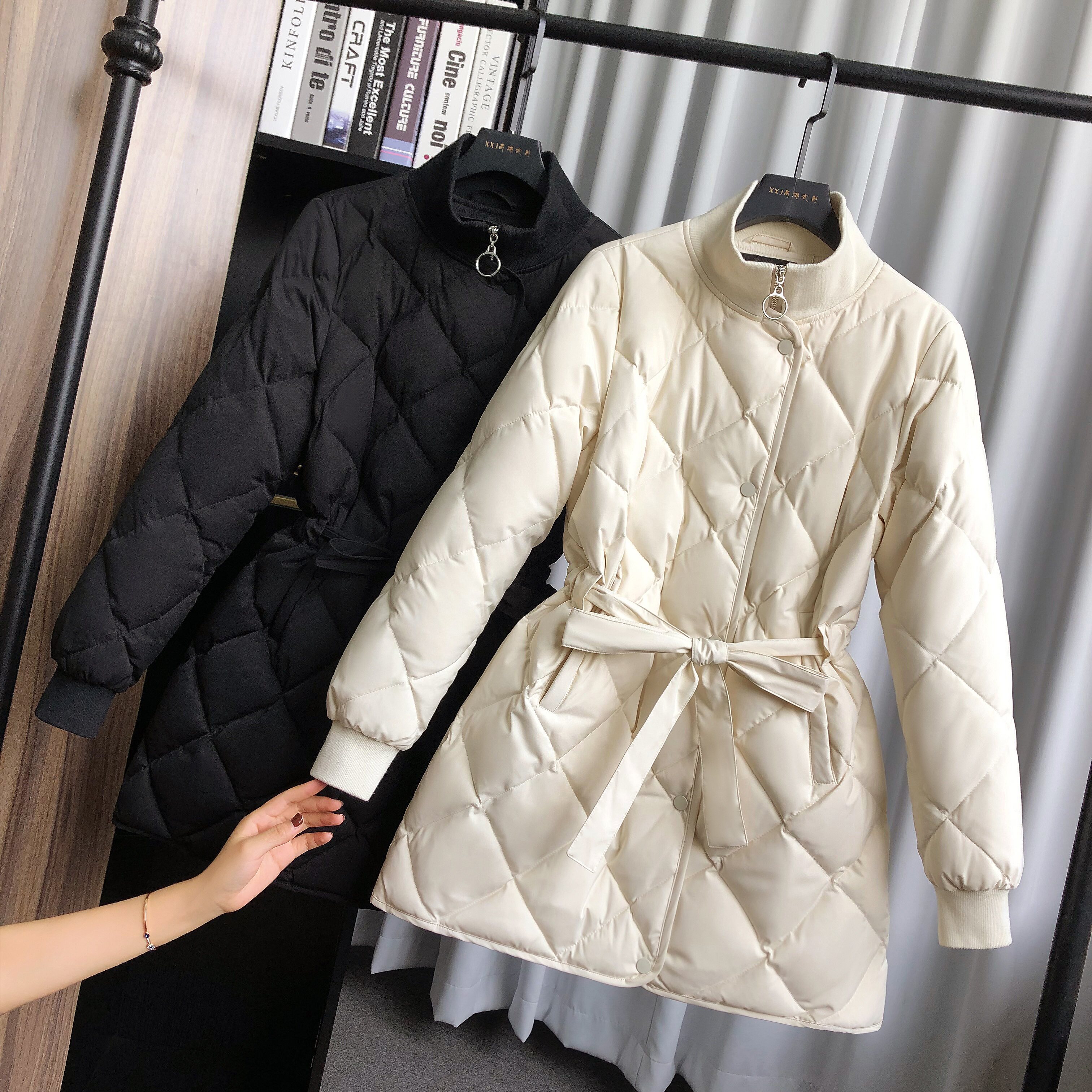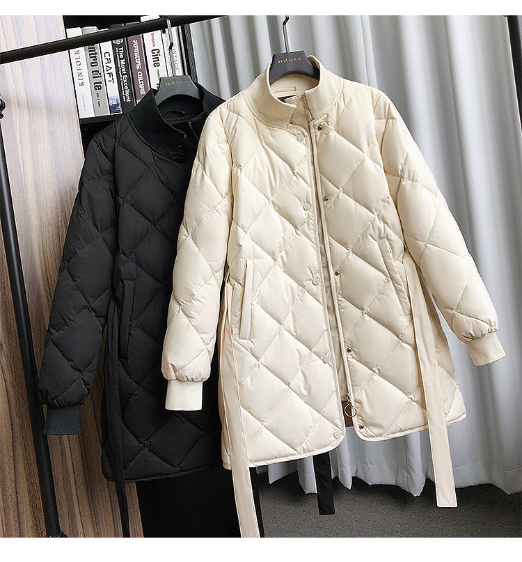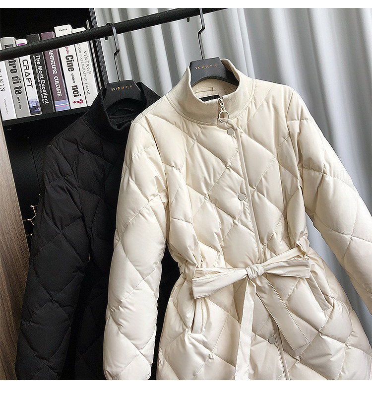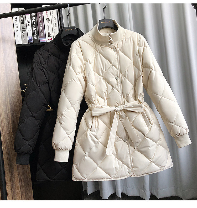 Зимний белый ремень, длинный пуховик, 2023, в корейском стиле, средней длины