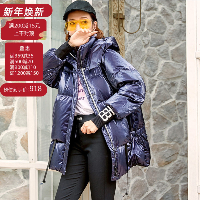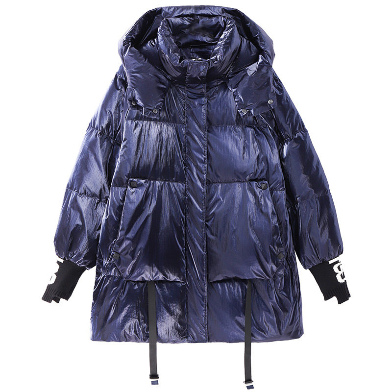 Зимний пуховик, модная глянцевая толстовка с капюшоном, коллекция 2021, большой размер, средней длины, увеличенная толщина