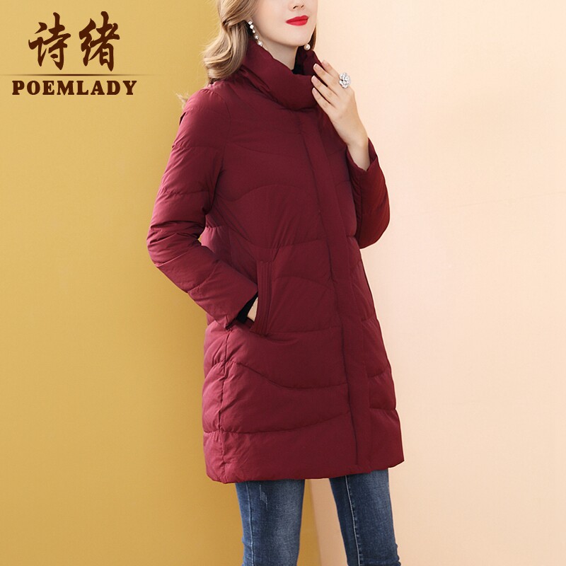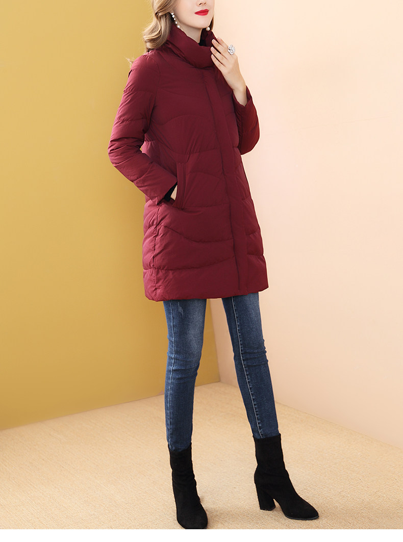 Бархатный модный бордовый демисезонный пуховик, утиный пух, 2020
