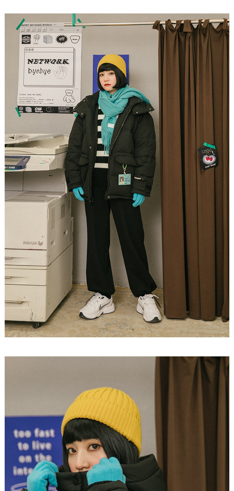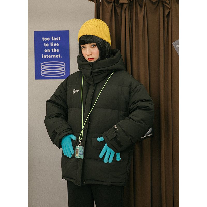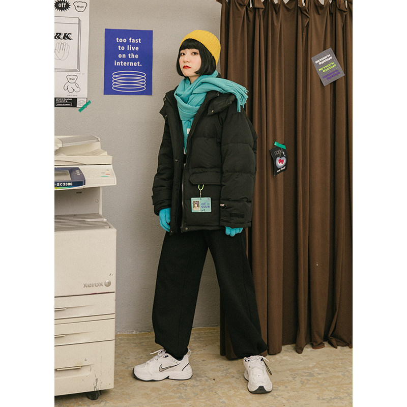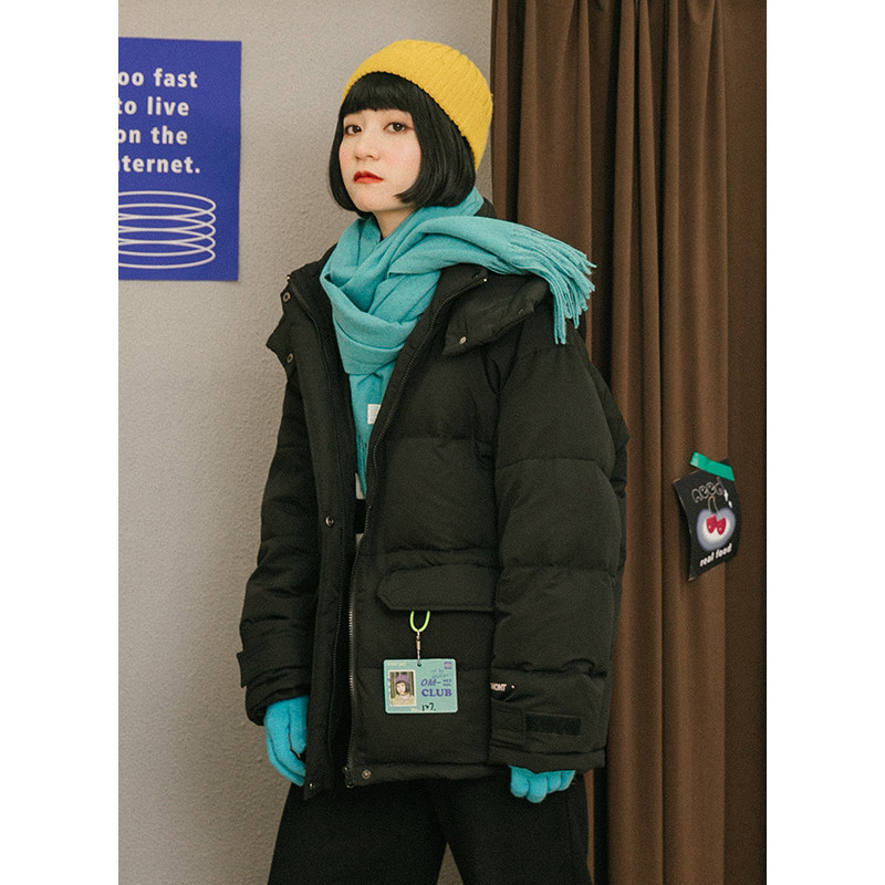 omont Ретро черный пуховик, зимняя куртка, свободный крой