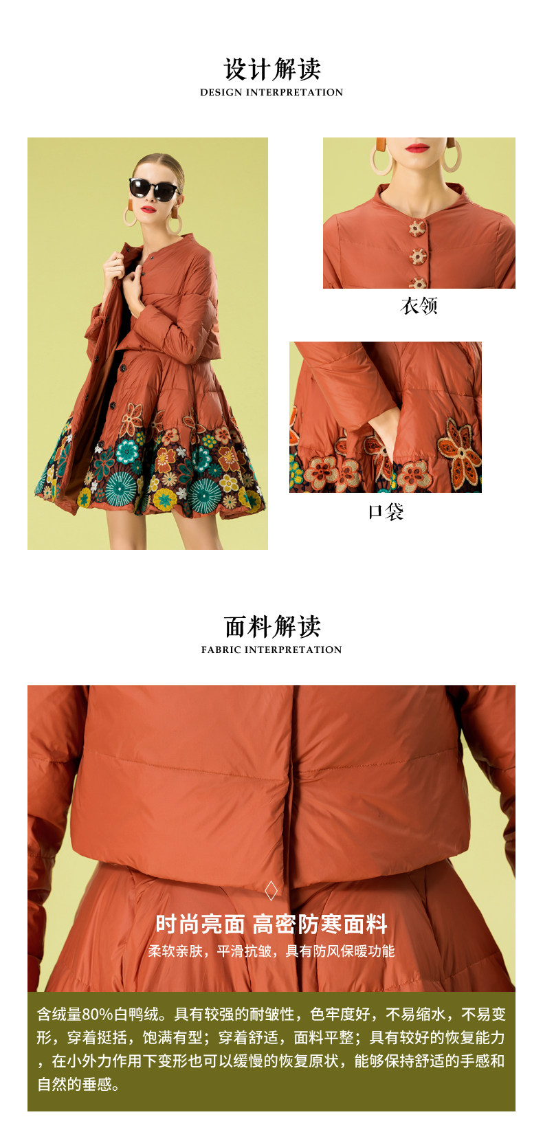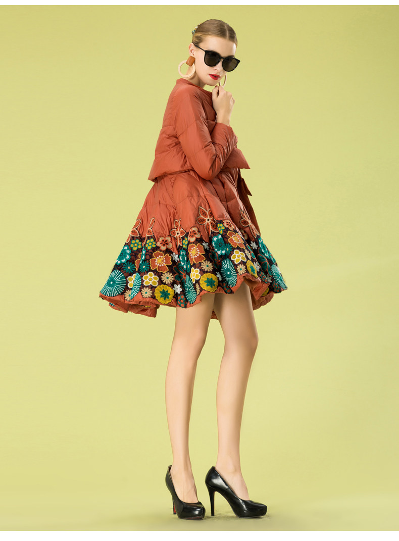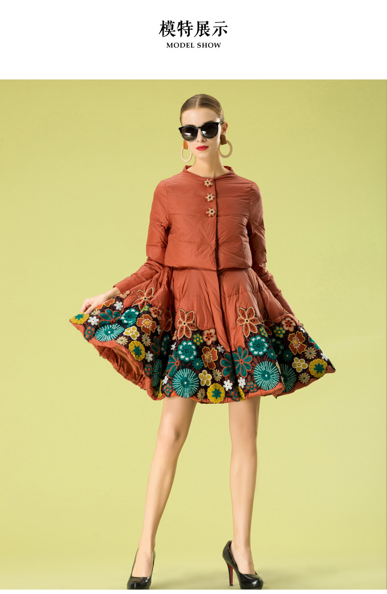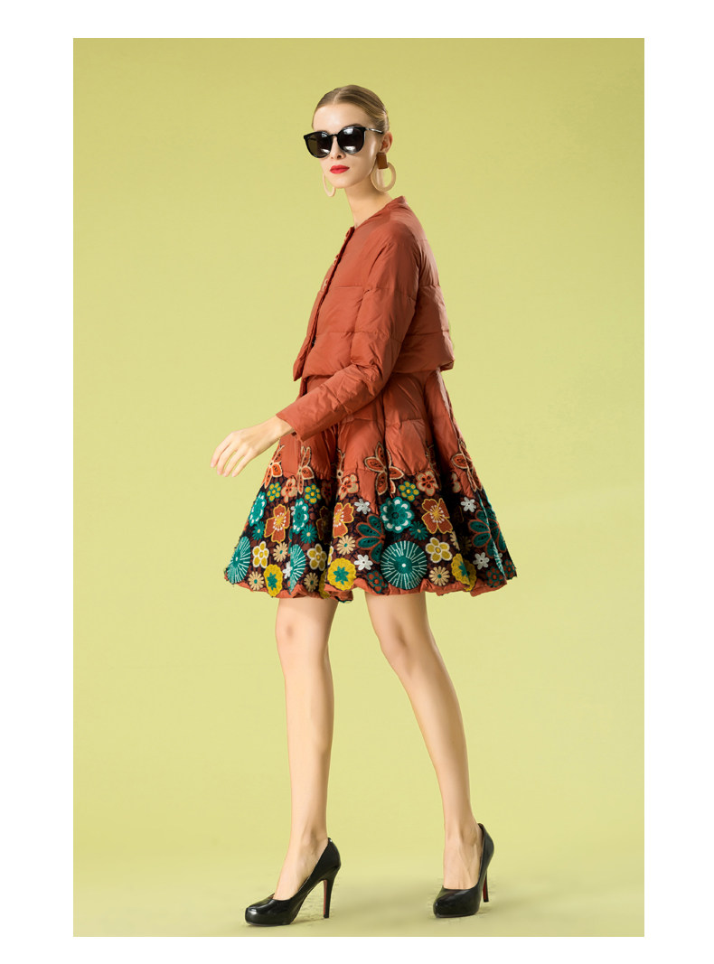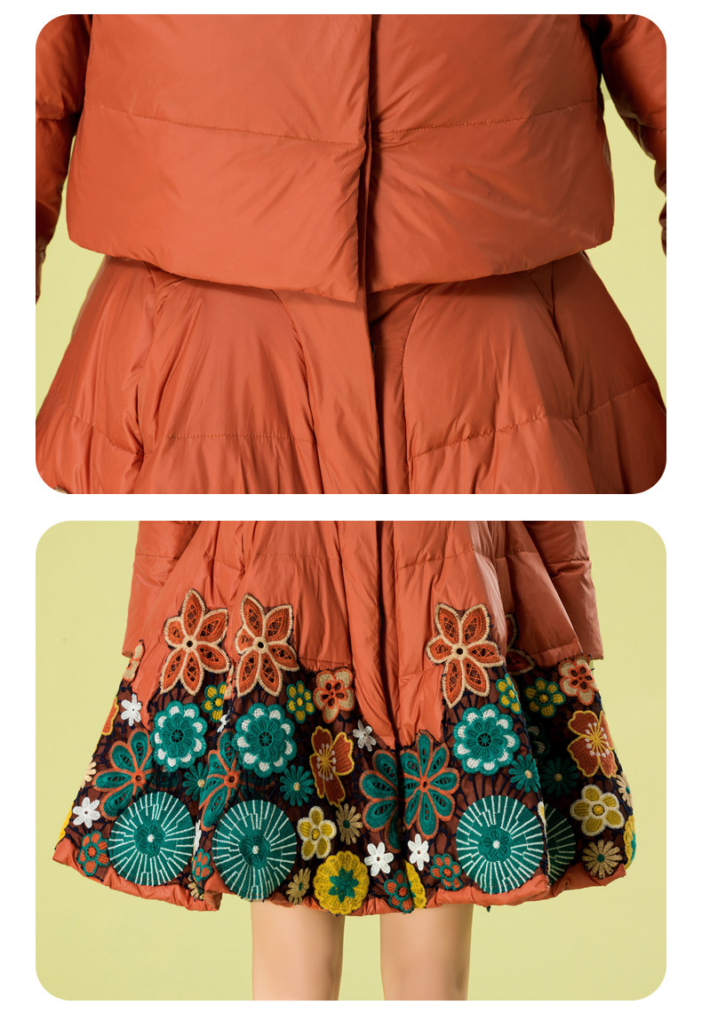 Пуховик, кружевной комплект, куртка, с вышивкой