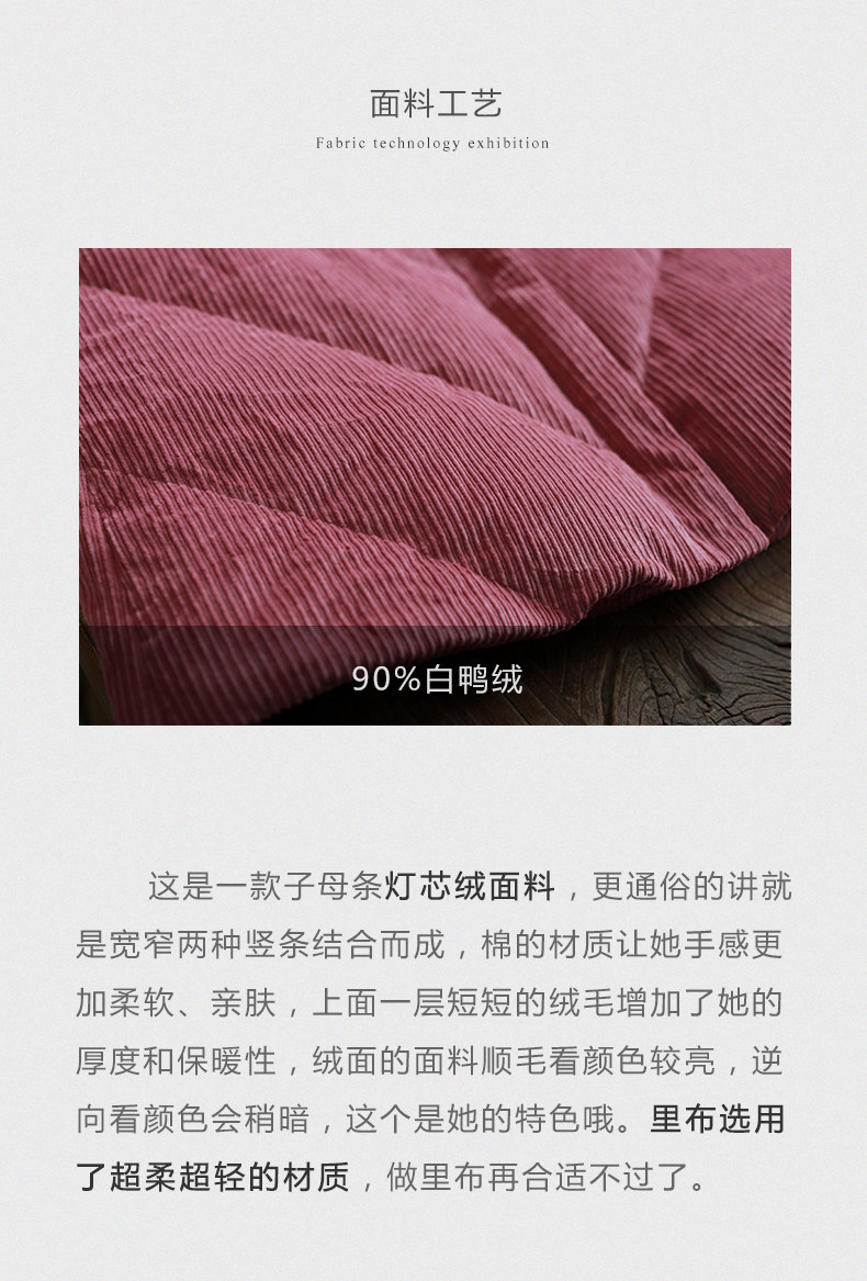 忆旧 Вельветовый пуховик, зимняя куртка, 2020, увеличенная толщина, утиный пух