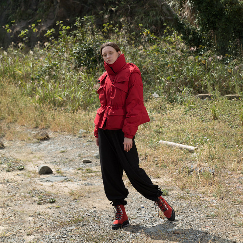 Оригинальная дизайнерская осенняя красная толстовка с капюшоном, бархатный пуховик, коллекция 2021, утиный пух