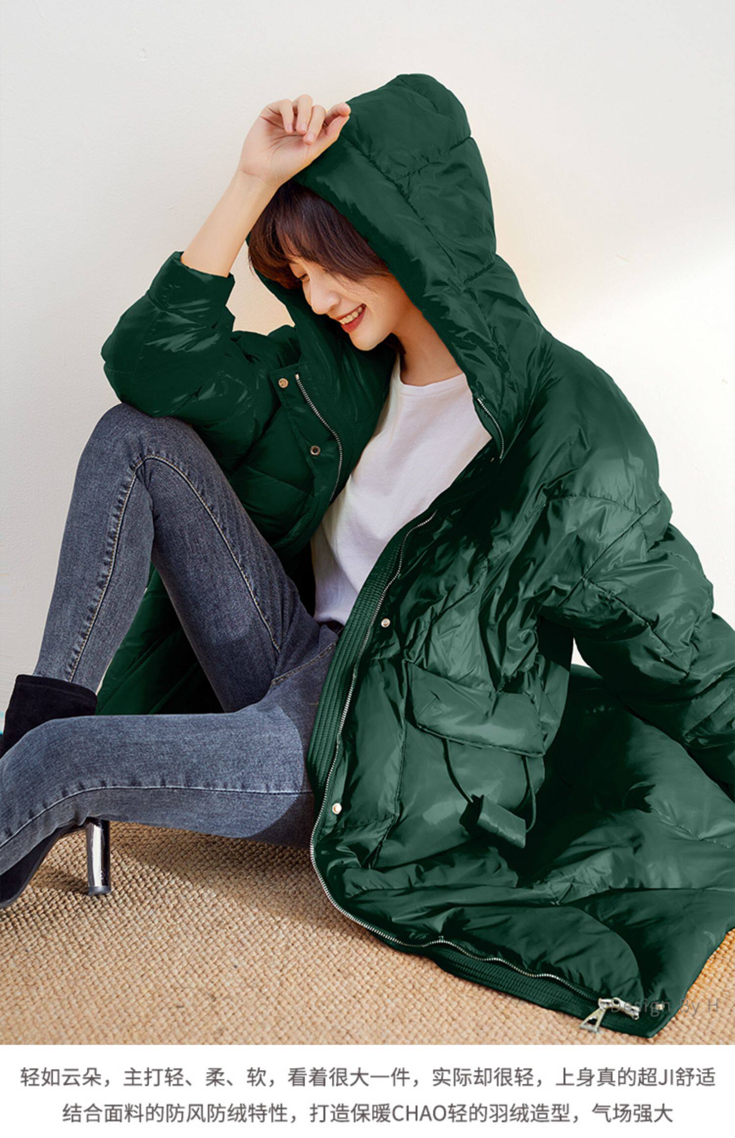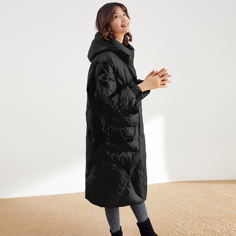 Пуховик, утепленная длинная толстовка с капюшоном, 2021 года, свободный прямой крой, длина макси