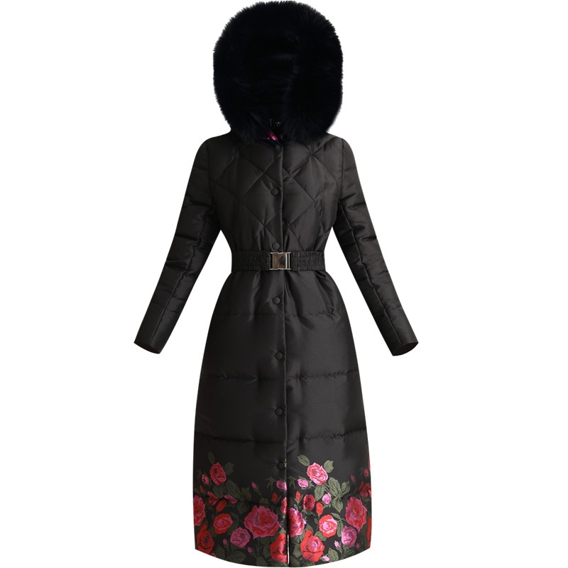 Длинный элитный удерживающий тепло пуховик с ромбовидным узором, черный плащ, большой размер