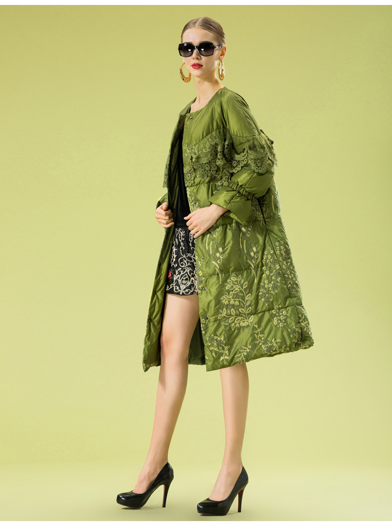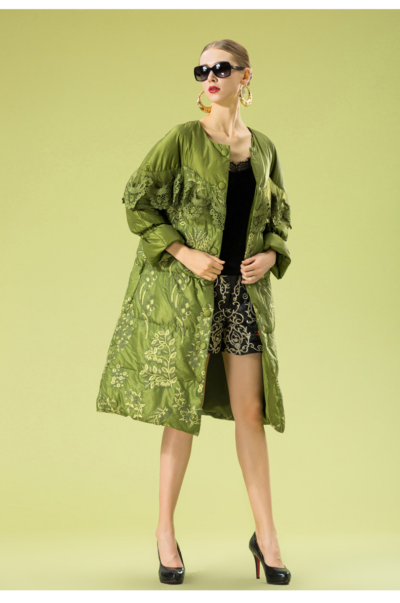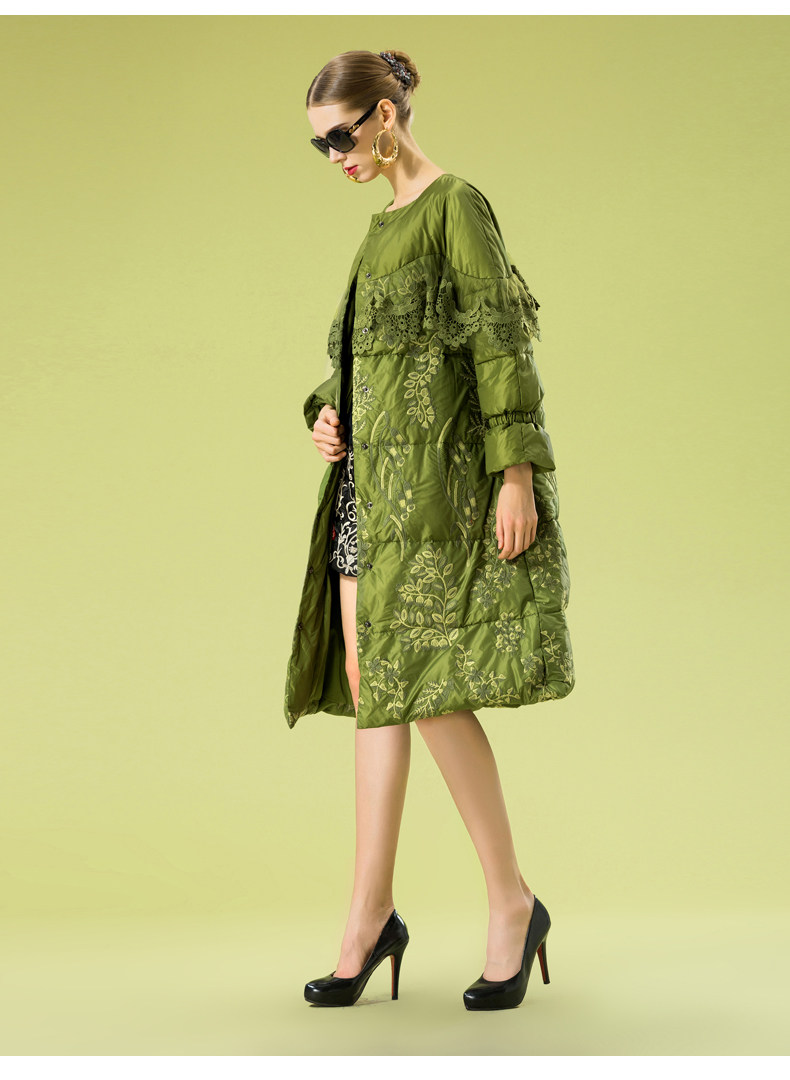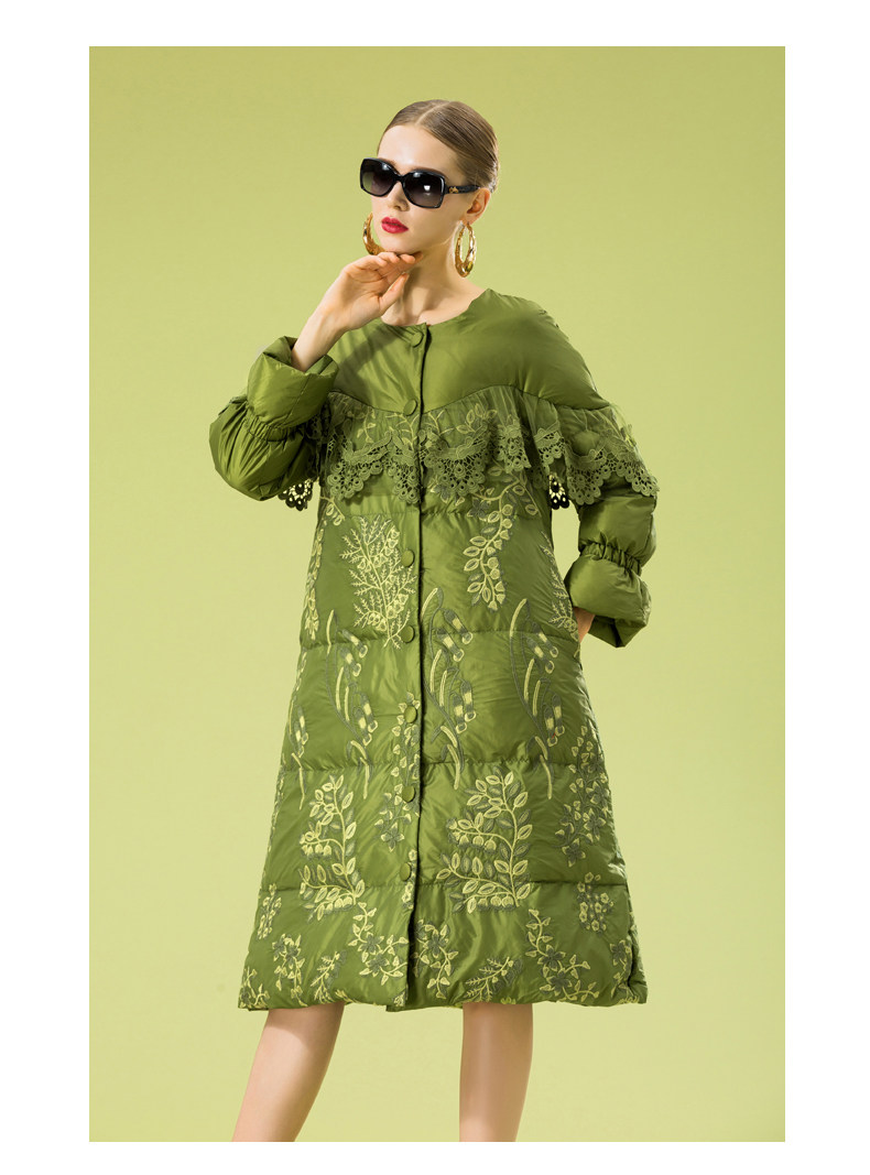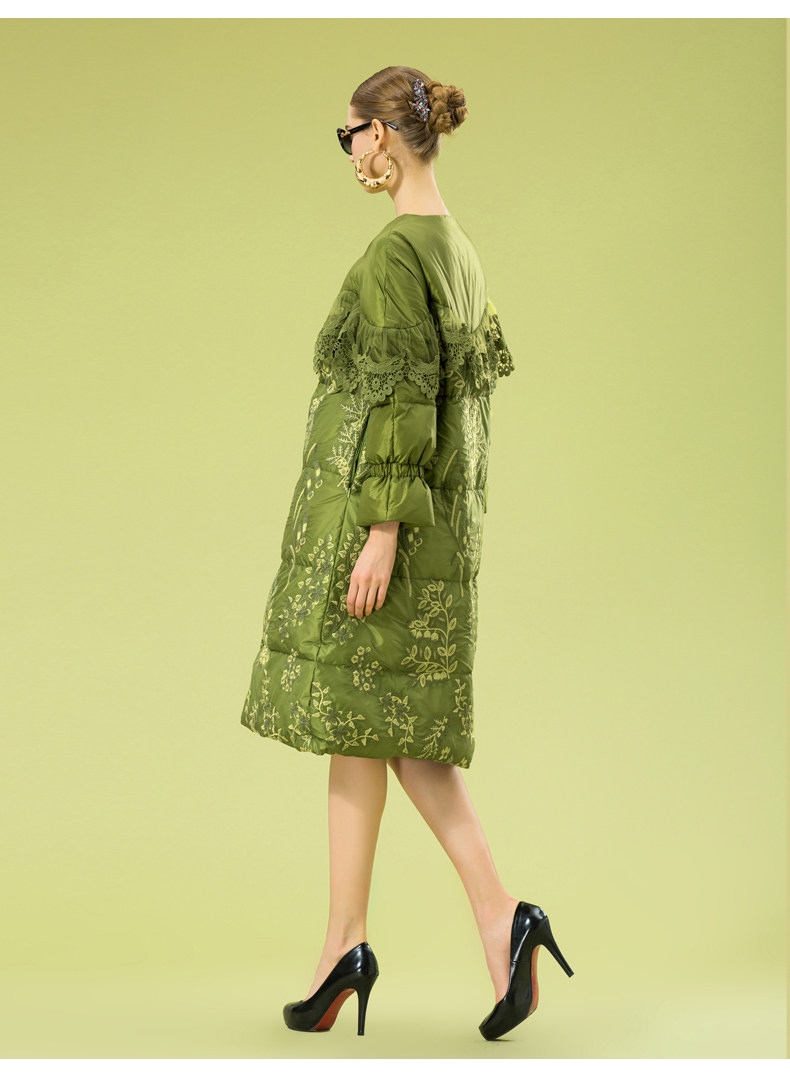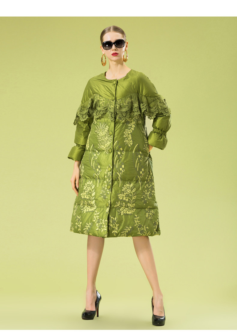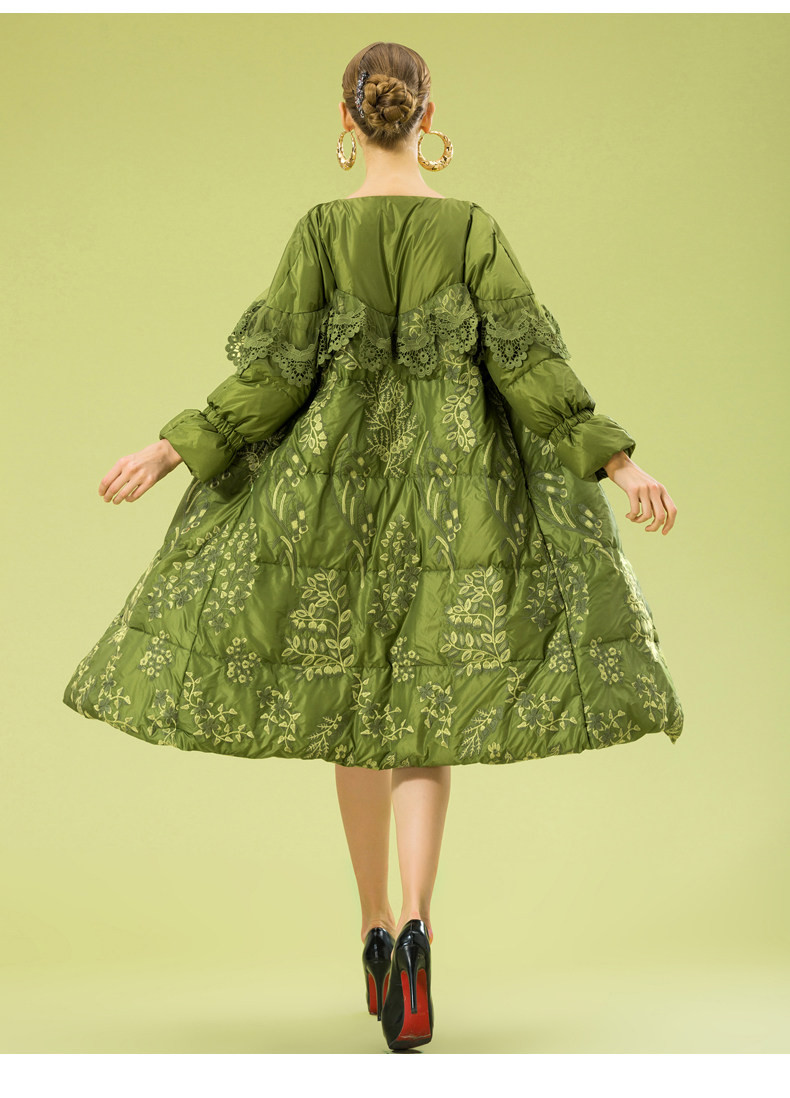 Зимний кружевной пуховик, длинная куртка, с вышивкой, кружевное платье, А-силуэт
