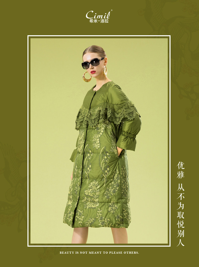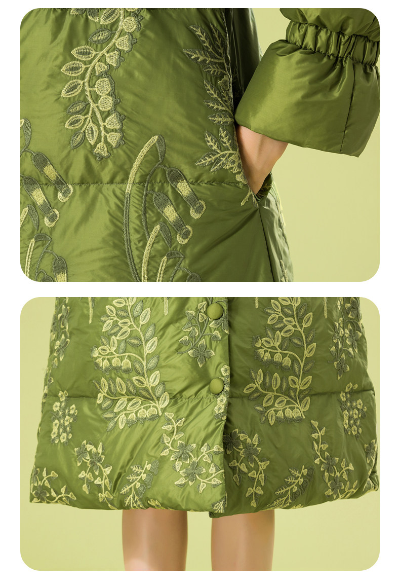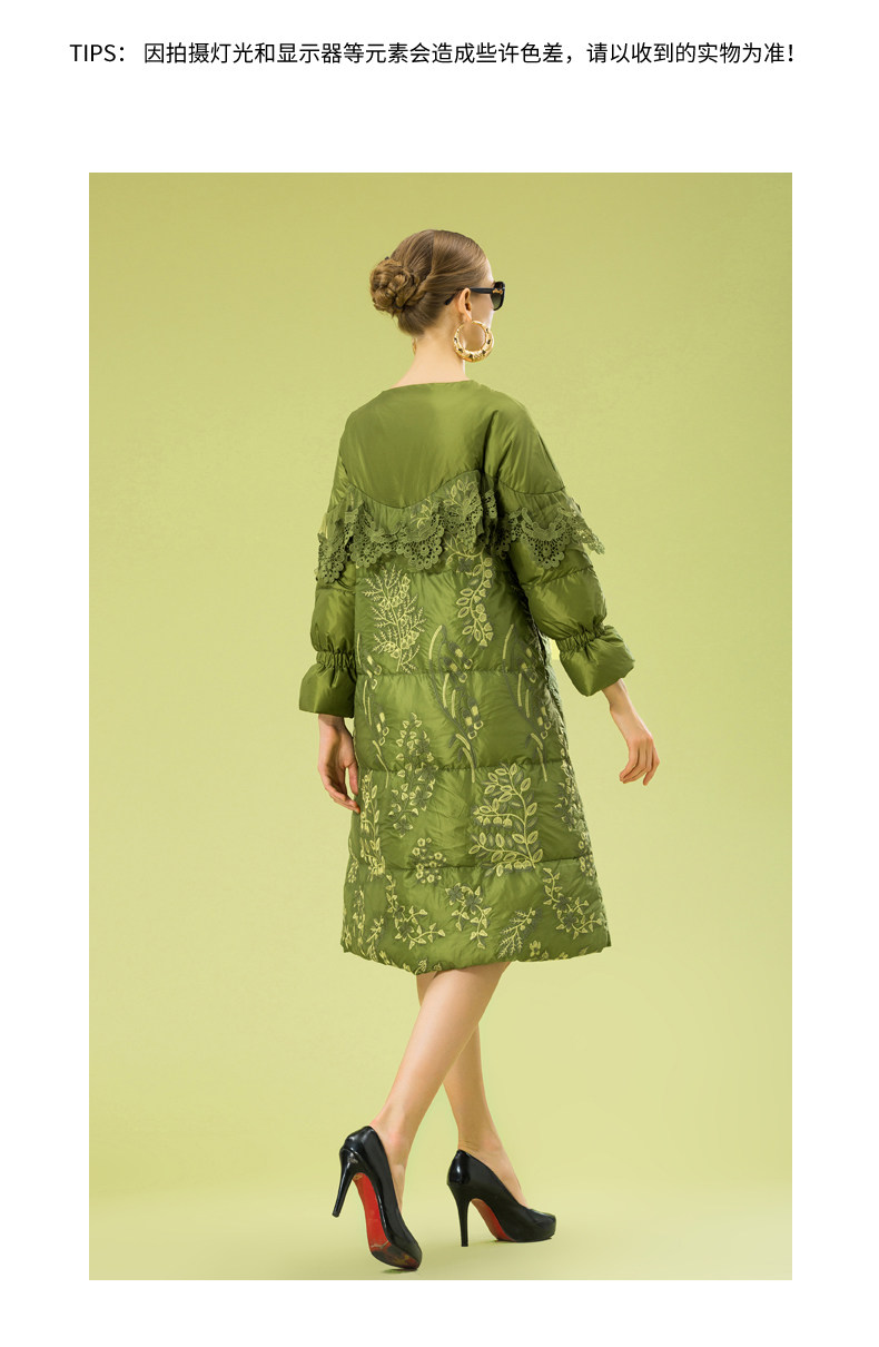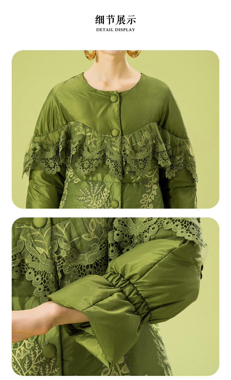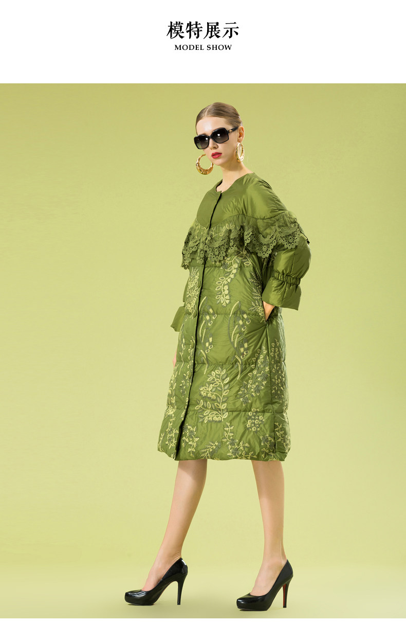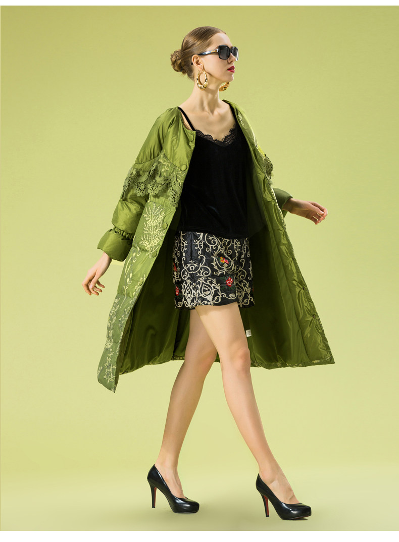 Зимний кружевной пуховик, длинная куртка, с вышивкой, кружевное платье, А-силуэт