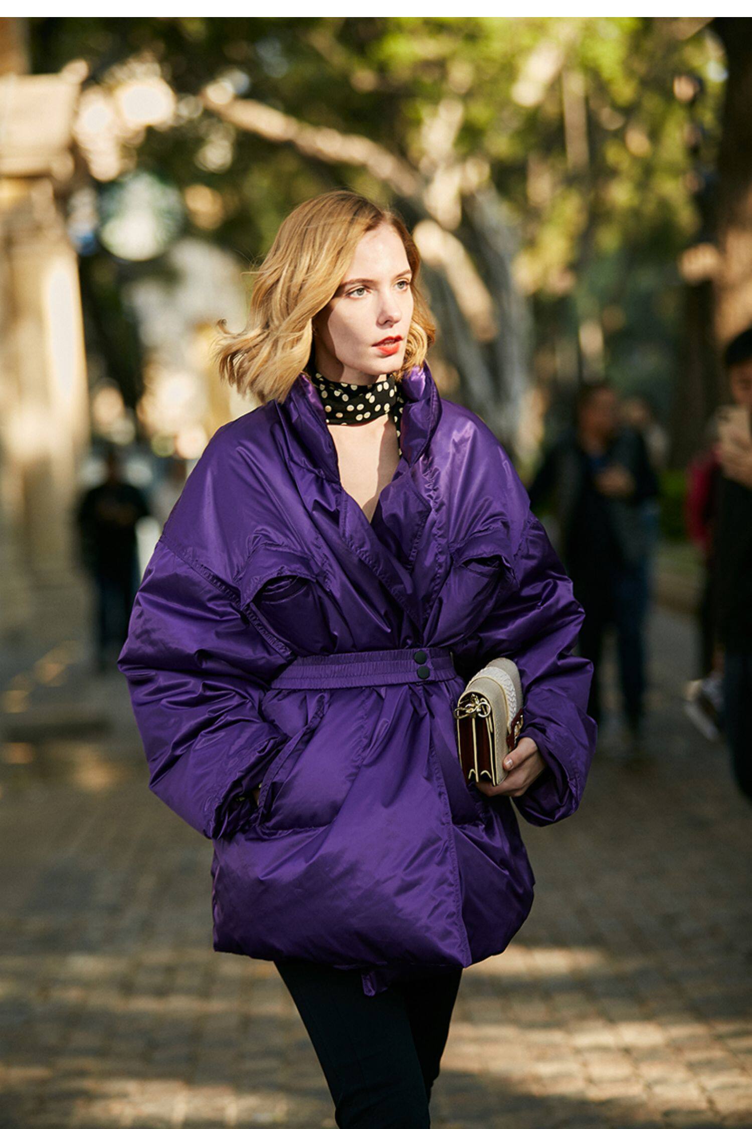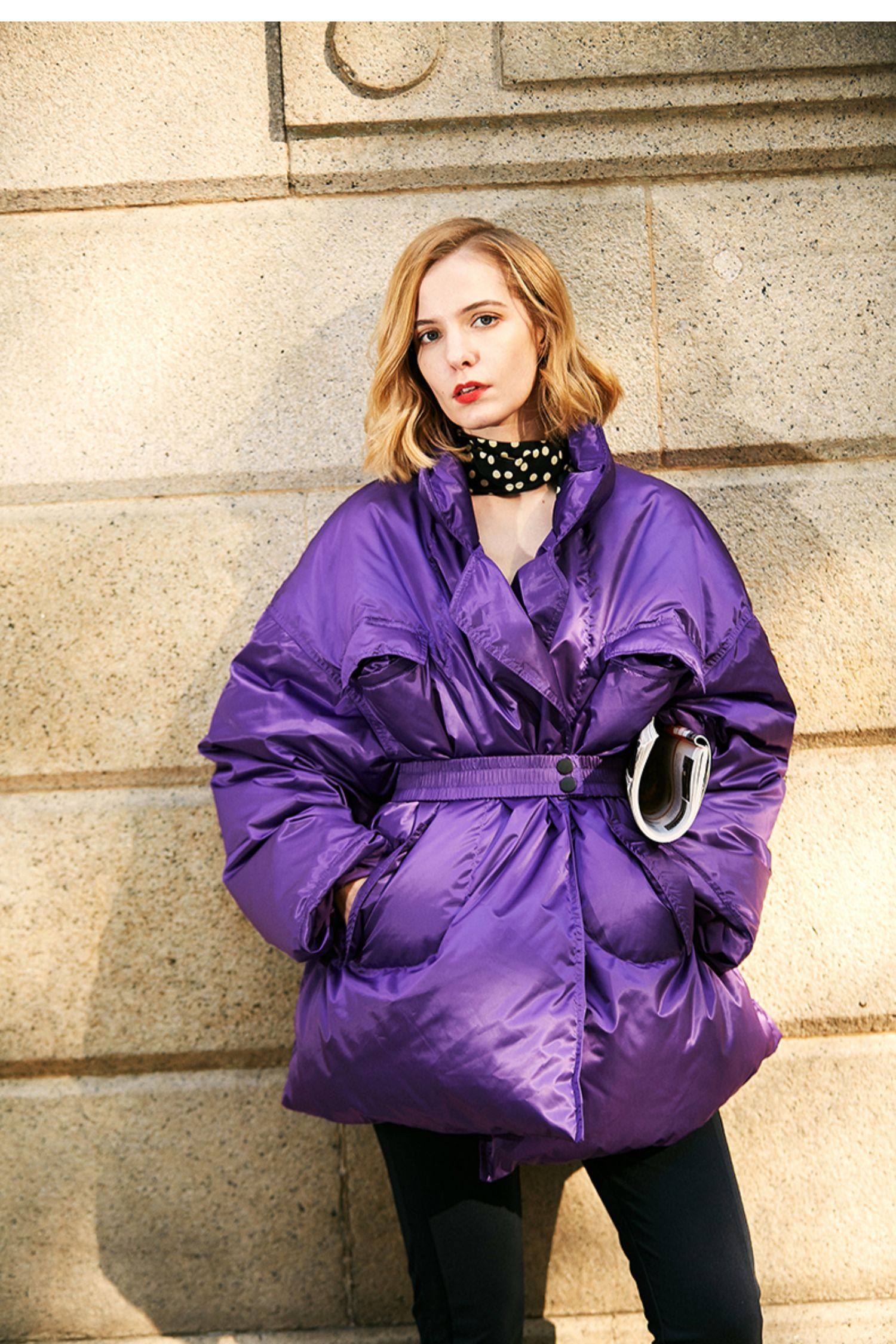 Небольшой дизайнерский элитный сиреневый элегантный пуховик, бархатная куртка, французский стиль