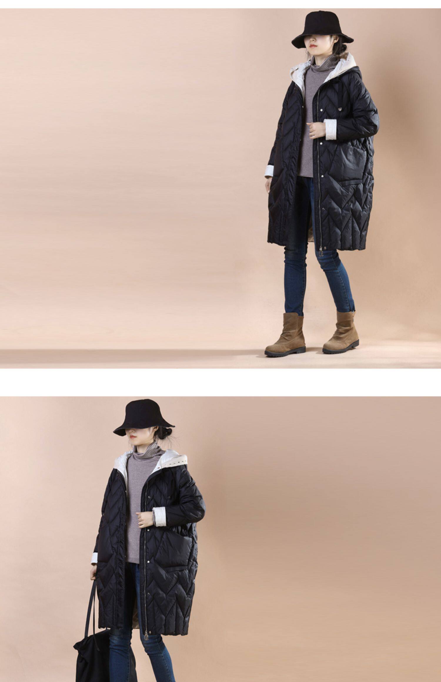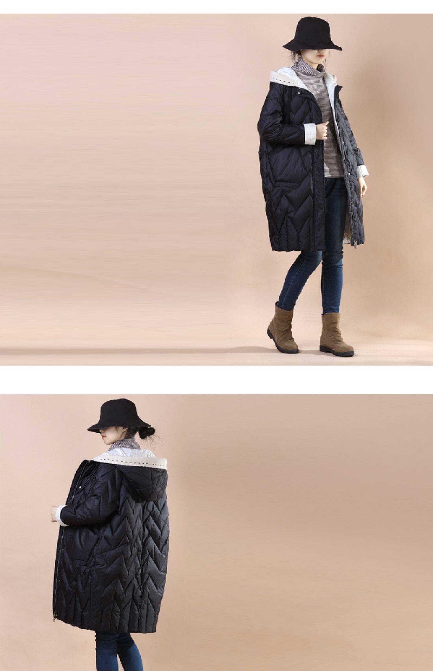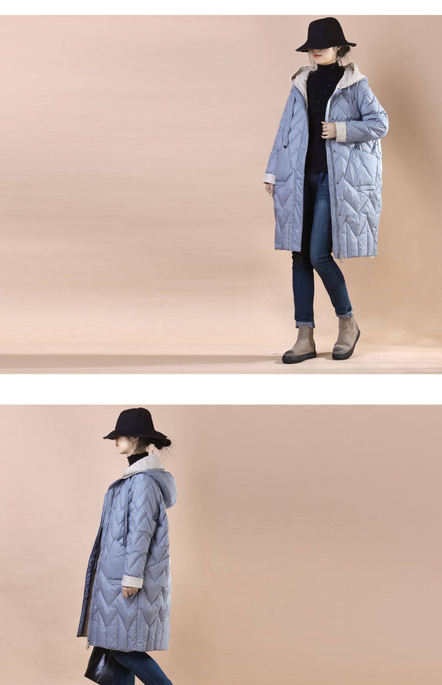 Общий эффект тела очень+разделите куртку в середине длины с улицы, чтобы следовать за шерстяной шапкой для шерстяной шва вниз по куртке