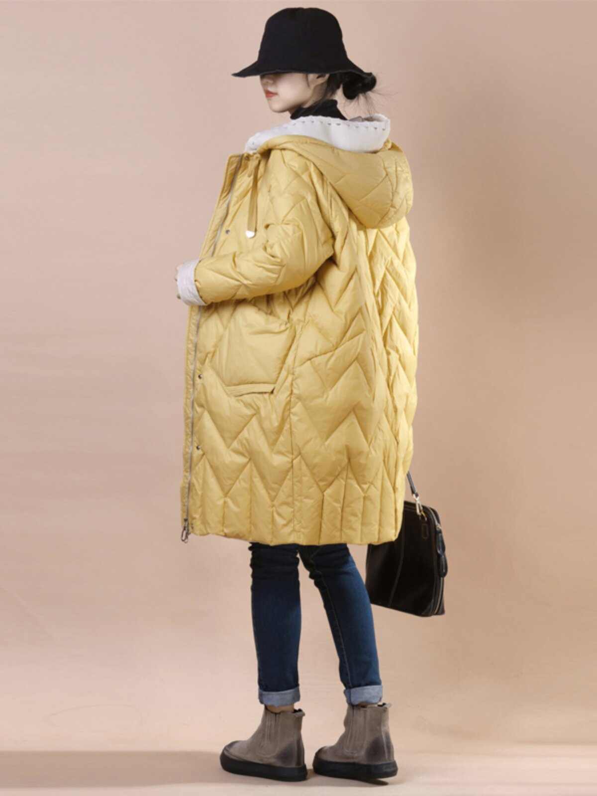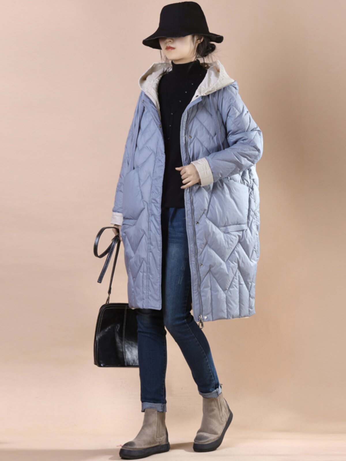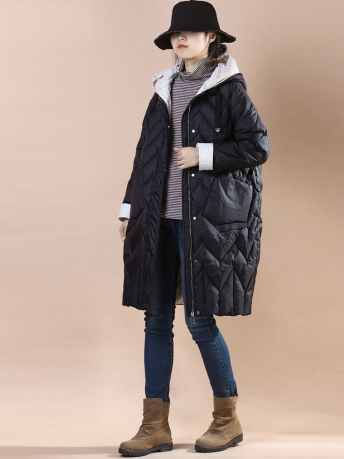 Общий эффект тела очень+разделите куртку в середине длины с улицы, чтобы следовать за шерстяной шапкой для шерстяной шва вниз по куртке