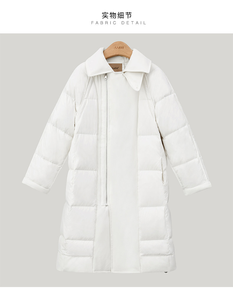 Amii Минималистичный зимний пуховик, асимметричная удерживающая тепло белая куртка, оверсайз