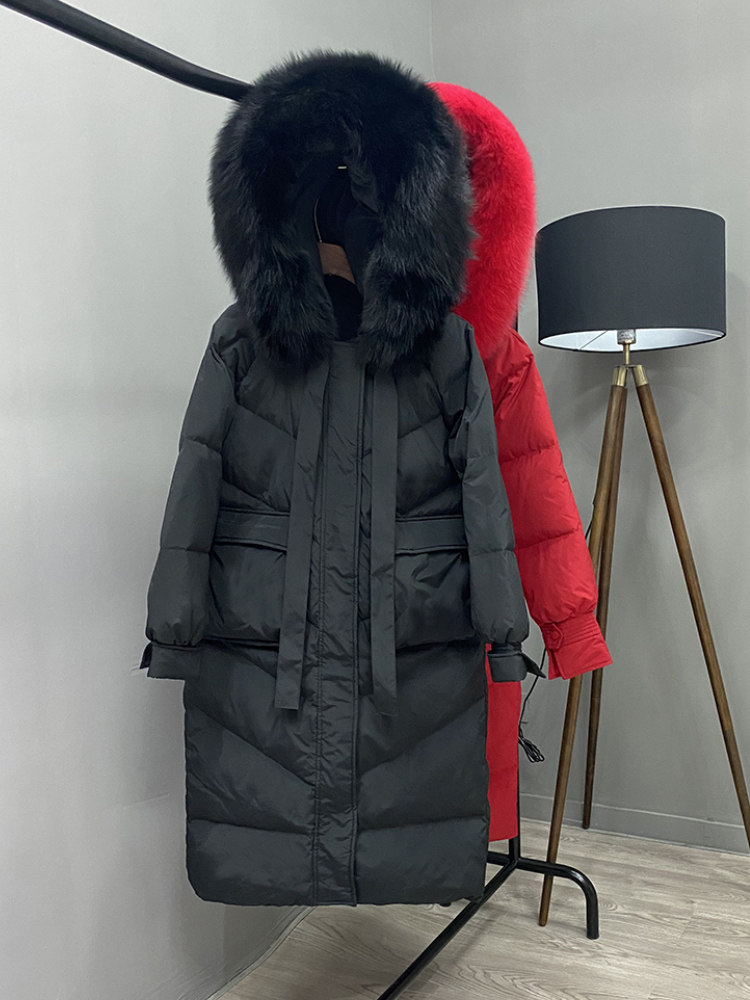 Пуховик, бархатная куртка, 2022, длина макси, в корейском стиле, утиный пух