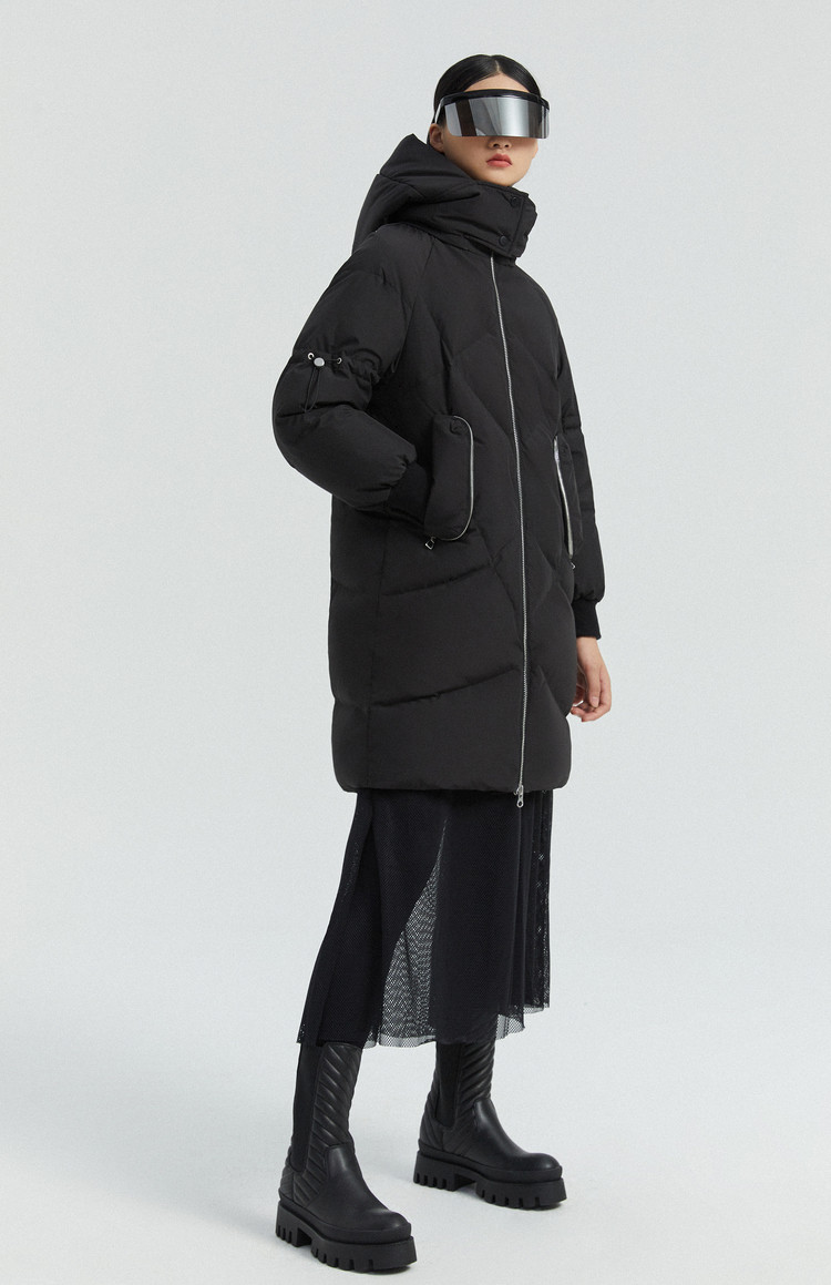 Черный длинный трендовый модный пуховик, 2020 года, средней длины