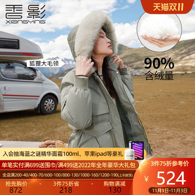 香影 Пуховик, бархатный корсет, длинная куртка, 2021 года, подходит для подростков, утиный пух, средней длины