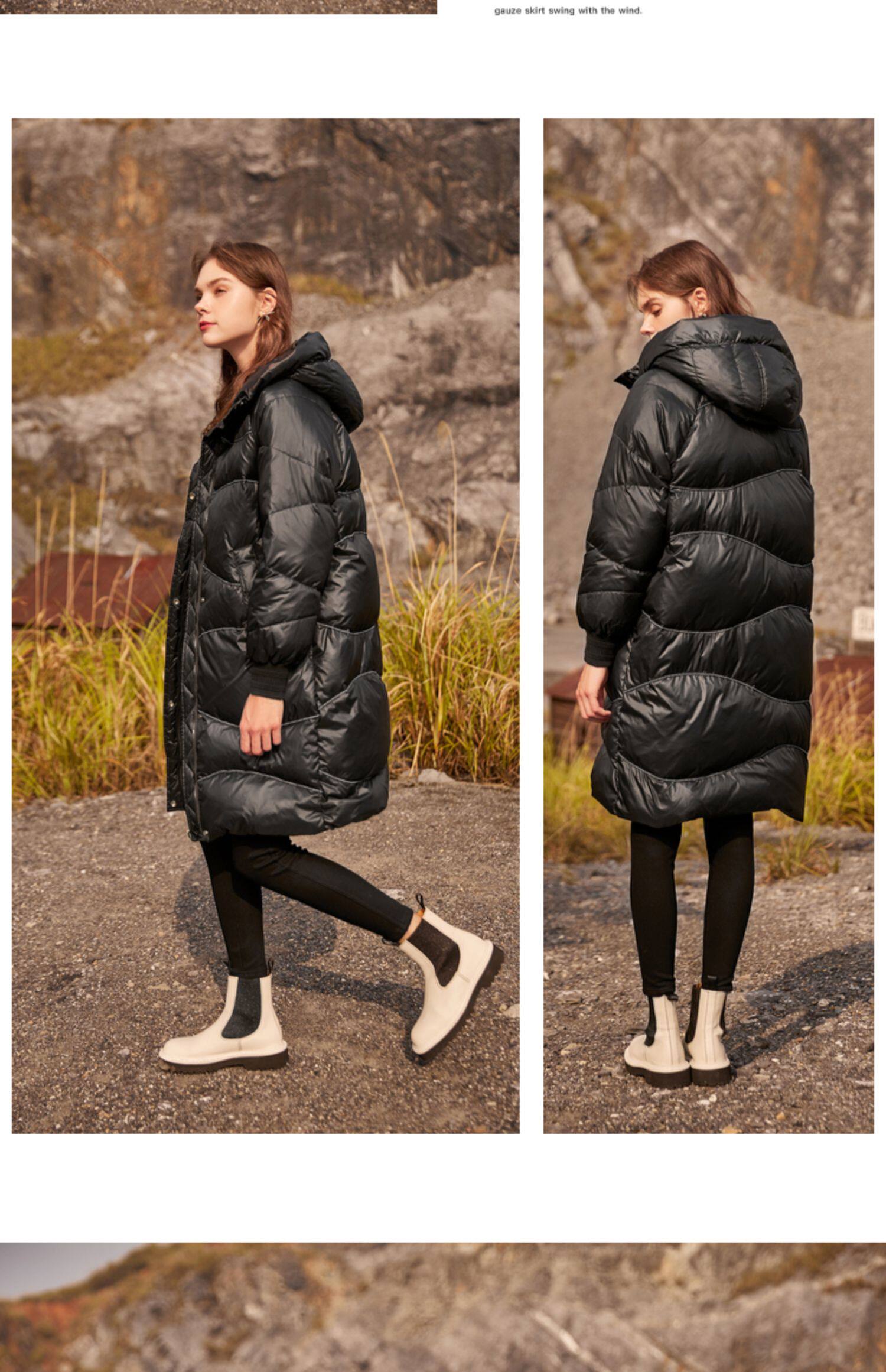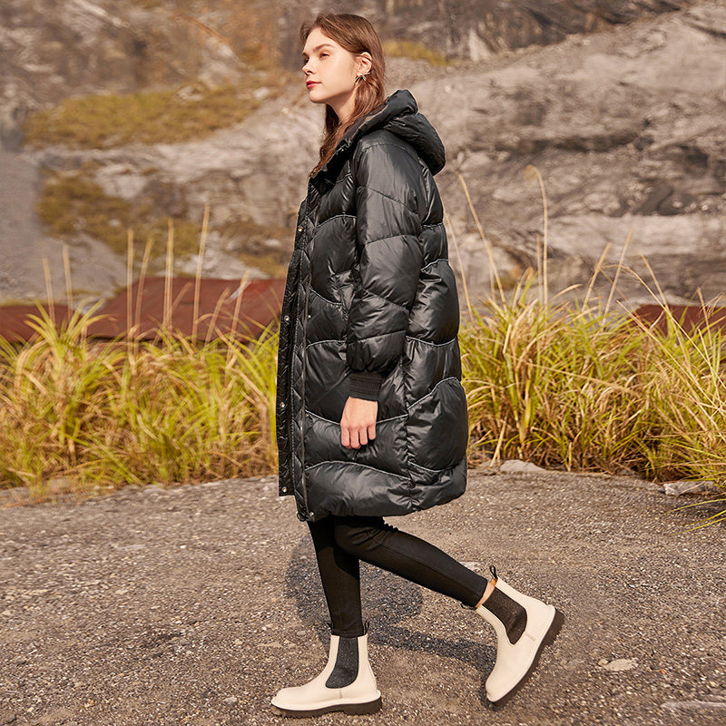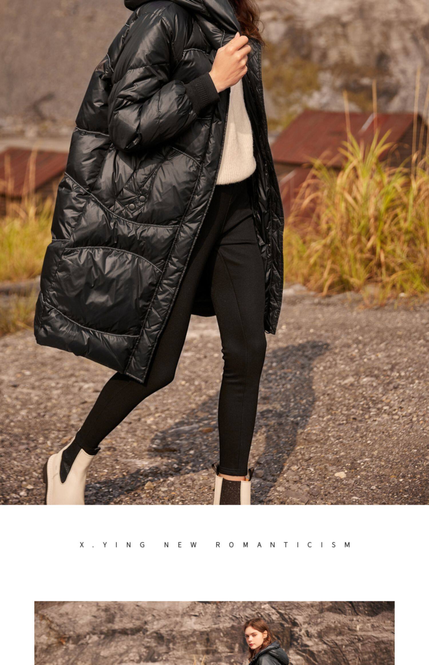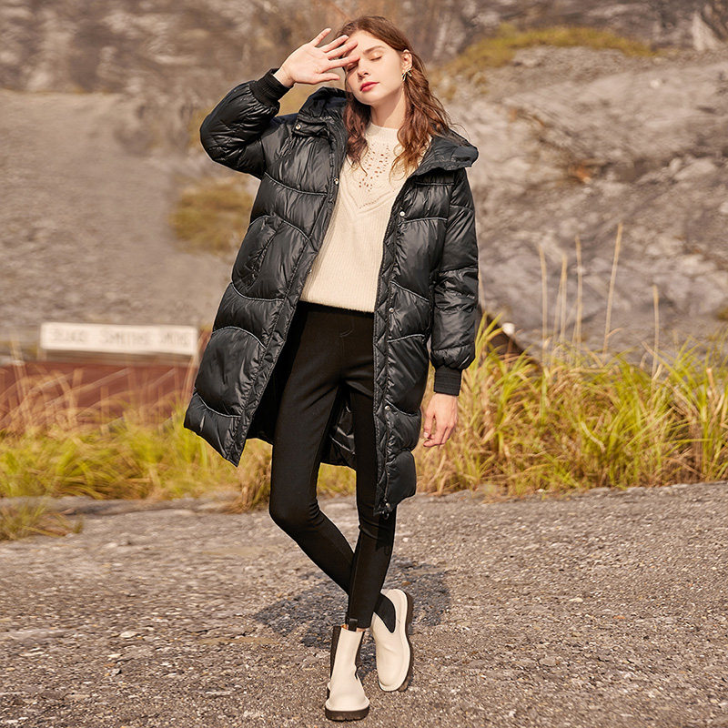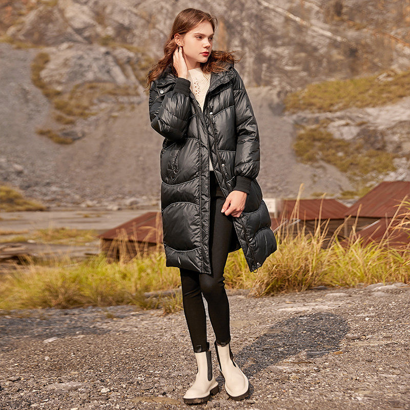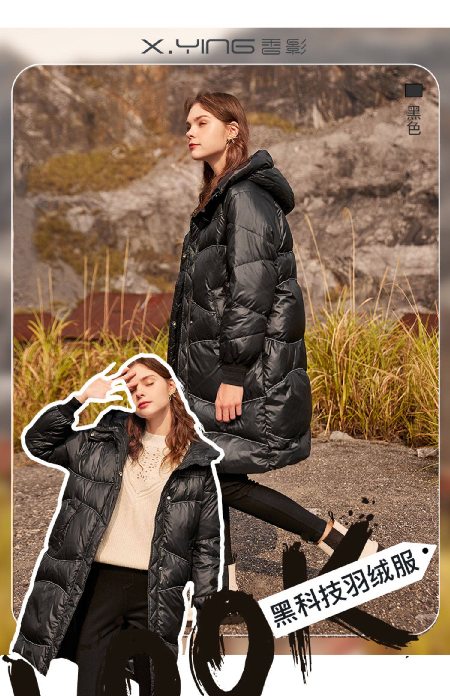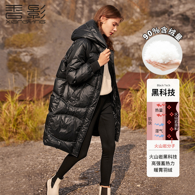 香影 Зимний пуховик, бархатная длинная черная толстовка с капюшоном, 2021 года, утиный пух, средней длины