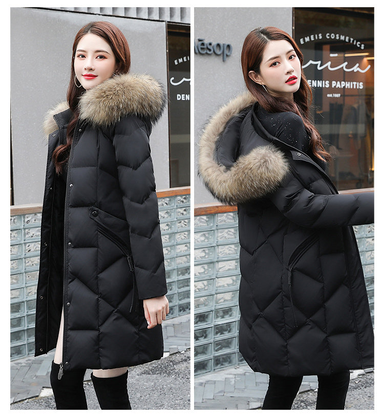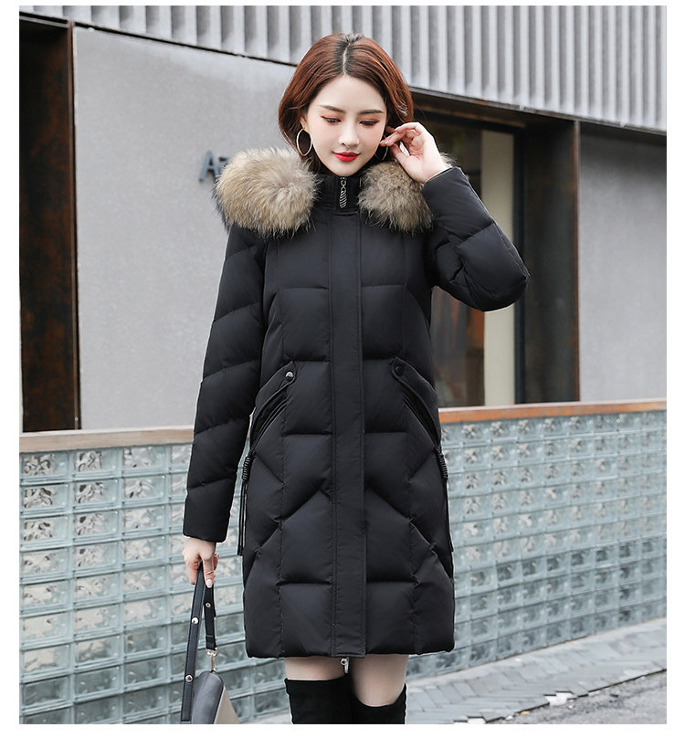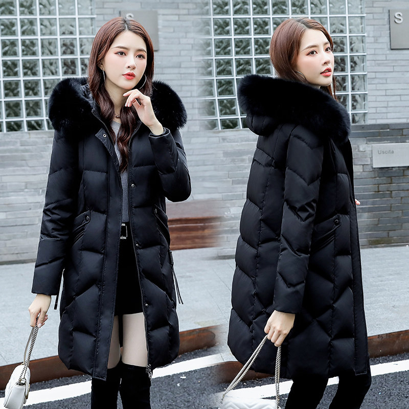 Пуховик, модная черная зимняя куртка, средней длины, коллекция 2022