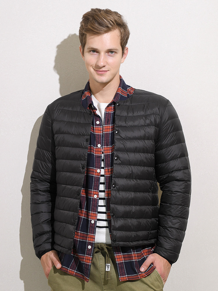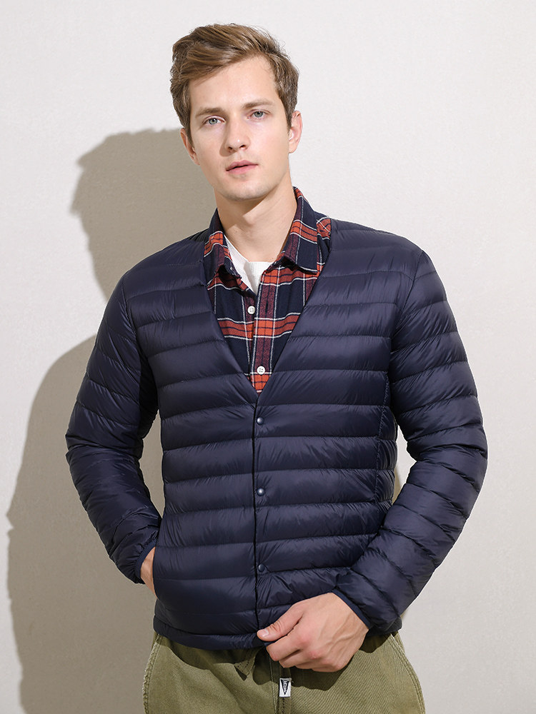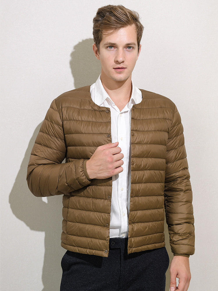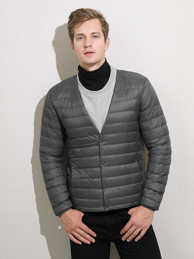 Мужской демисезонный пуховик, куртка с круглым воротником, V-образный вырез