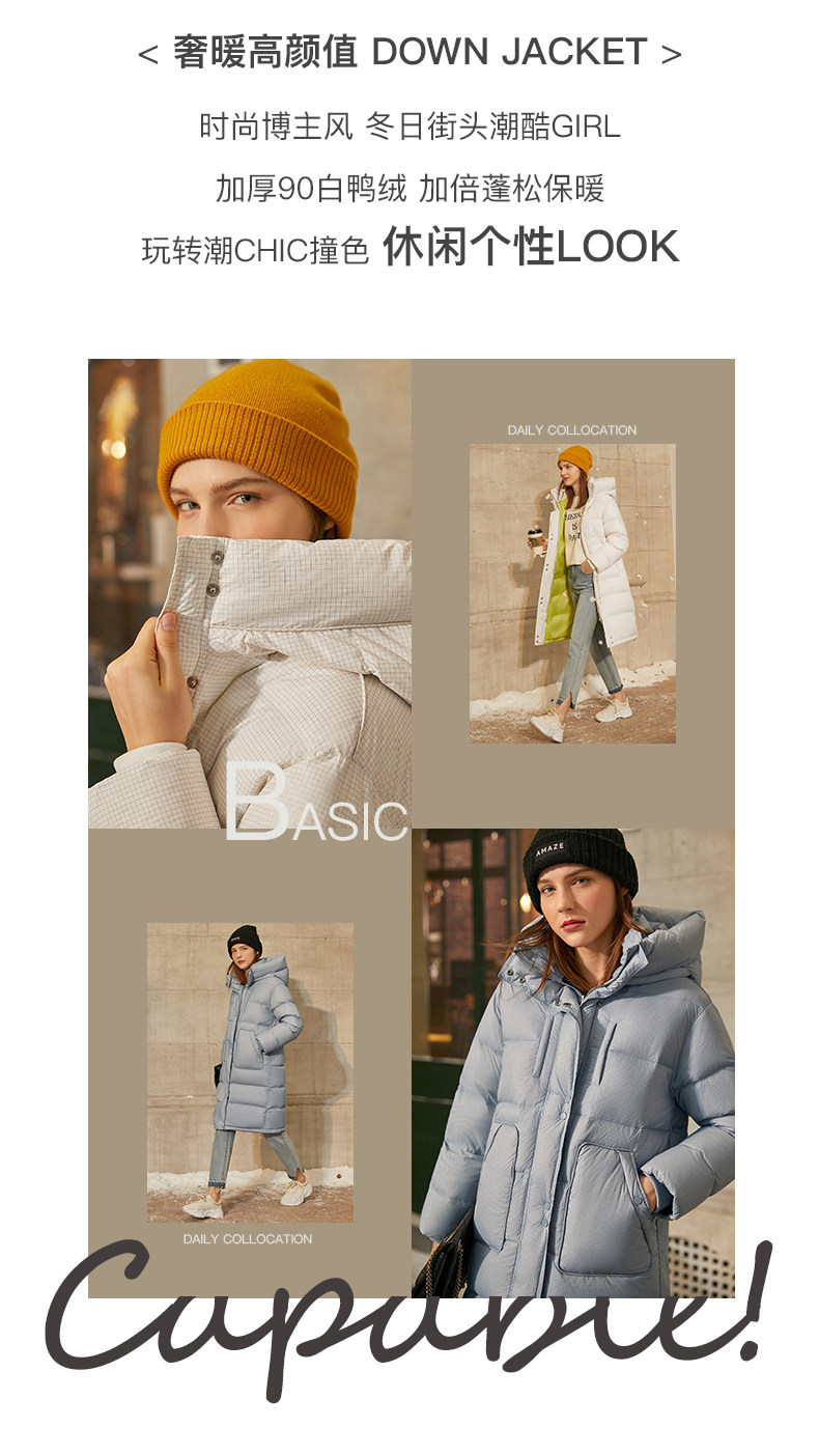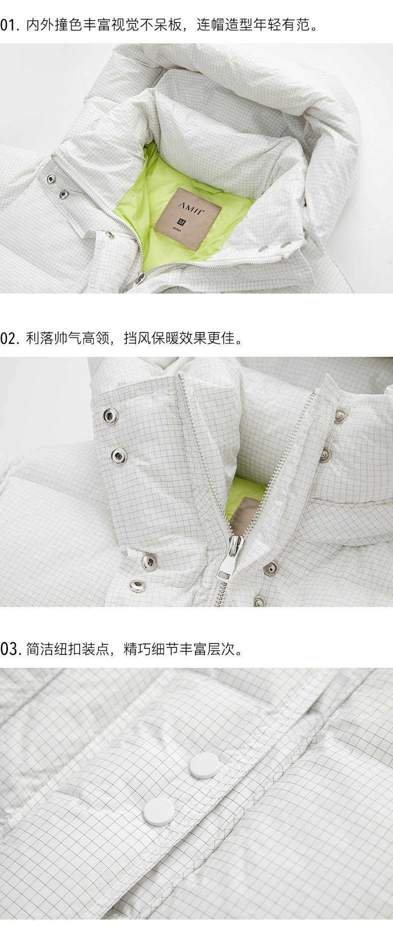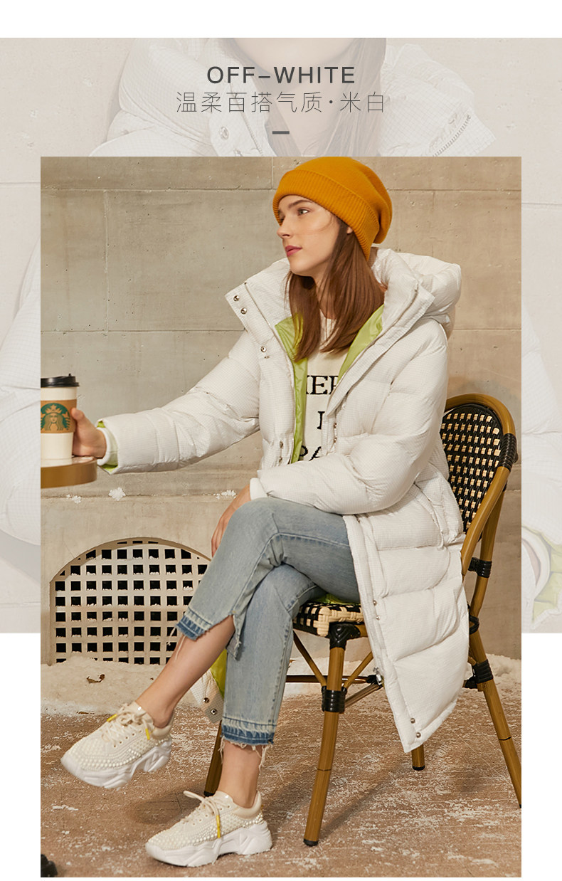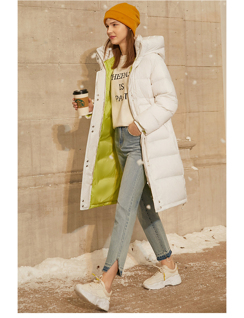 Amii Зимний пуховик для отдыха, кремовая белая куртка, коллекция 2021, увеличенная толщина