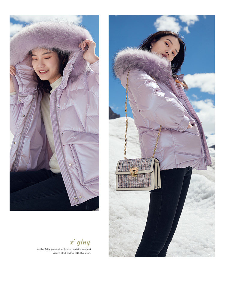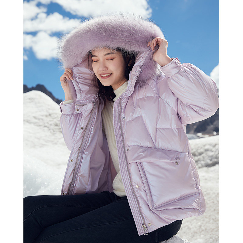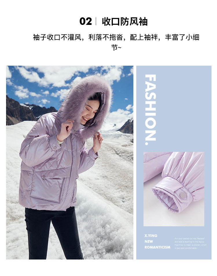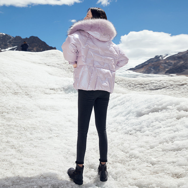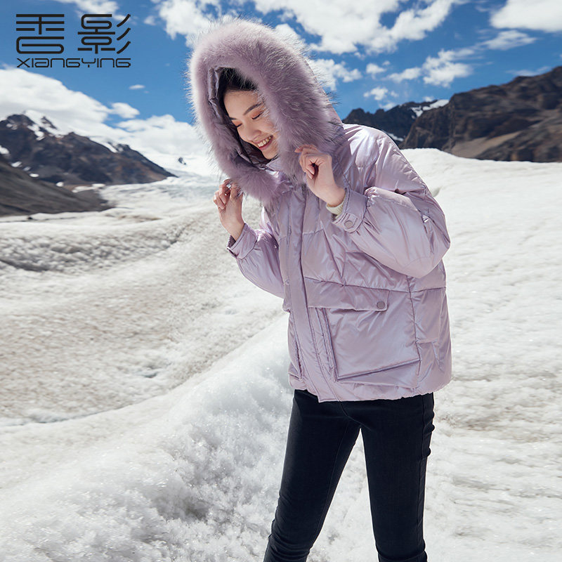 香影 Сиреневый глянцевый пуховик для отдыха, бархатная куртка, 2020, в корейском стиле, утиный пух