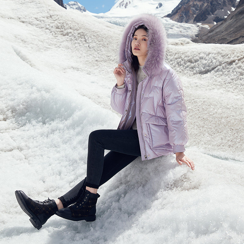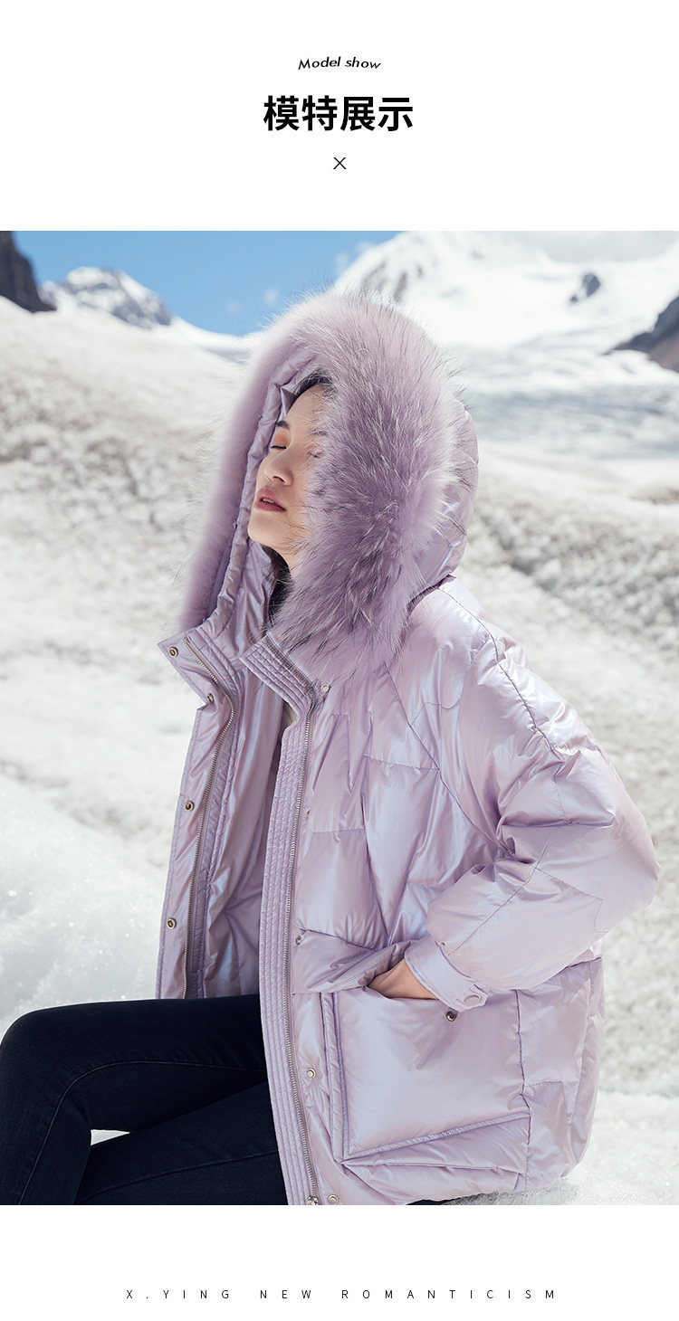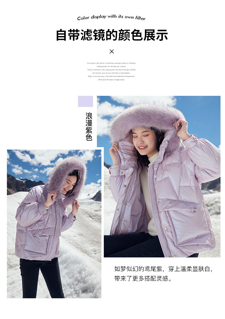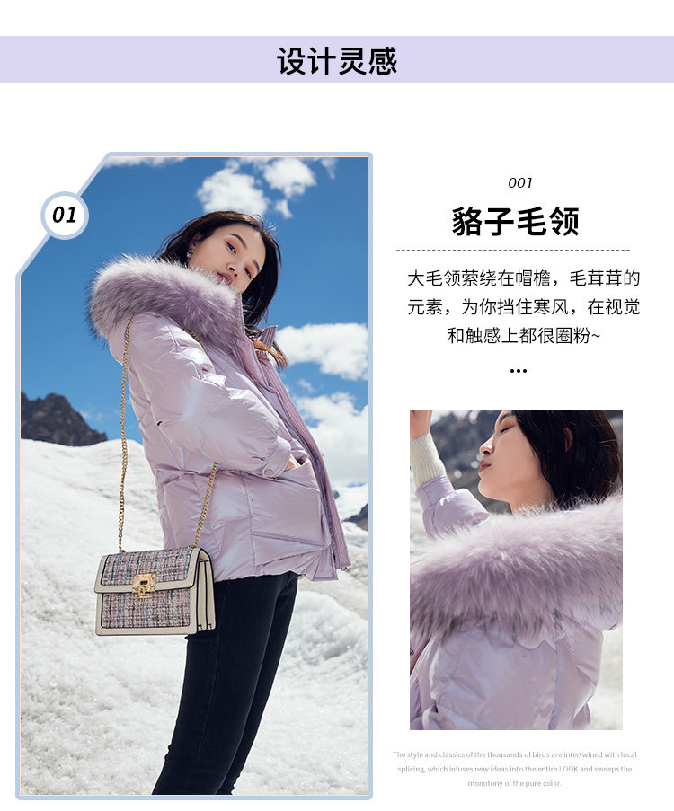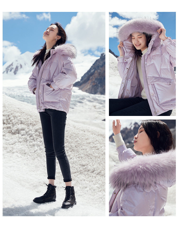 香影 Сиреневый глянцевый пуховик для отдыха, бархатная куртка, 2020, в корейском стиле, утиный пух