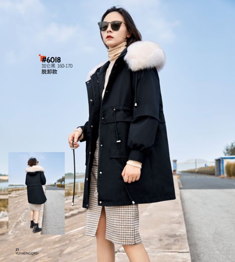 Yu Meng Qi Fei 6018 Женский модный отдых в середине длины выключен вниз и выгрузите наполовину готовую кожу женскую одежду.