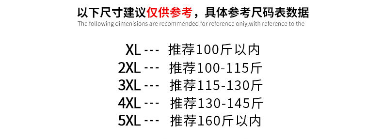| Размер: | XL рекомендует менее 105 кот, 2xl рекомендуйте 105-115 Catties, 3xl рекомендуйте 115-125 кот, 4xl рекомендуйте 125-135 Catties, 5xl рекомендуйте 135-150 кот |