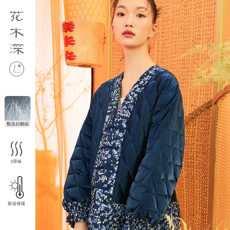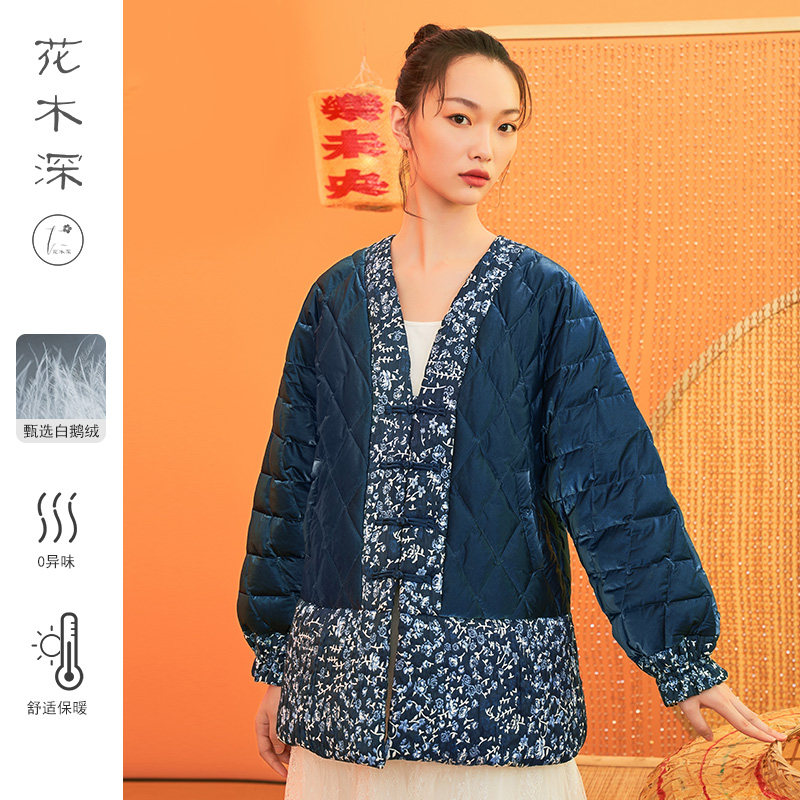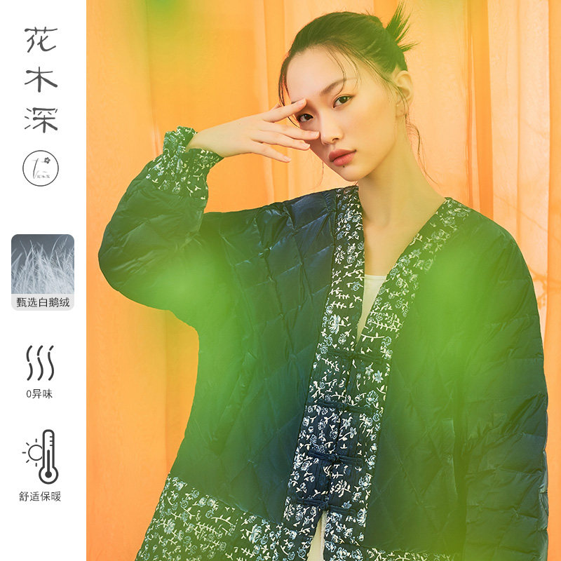 花木深 Ретро пуховик, куртка, ветрозащитное удерживающее тепло пальто, гусиный пух, китайский стиль