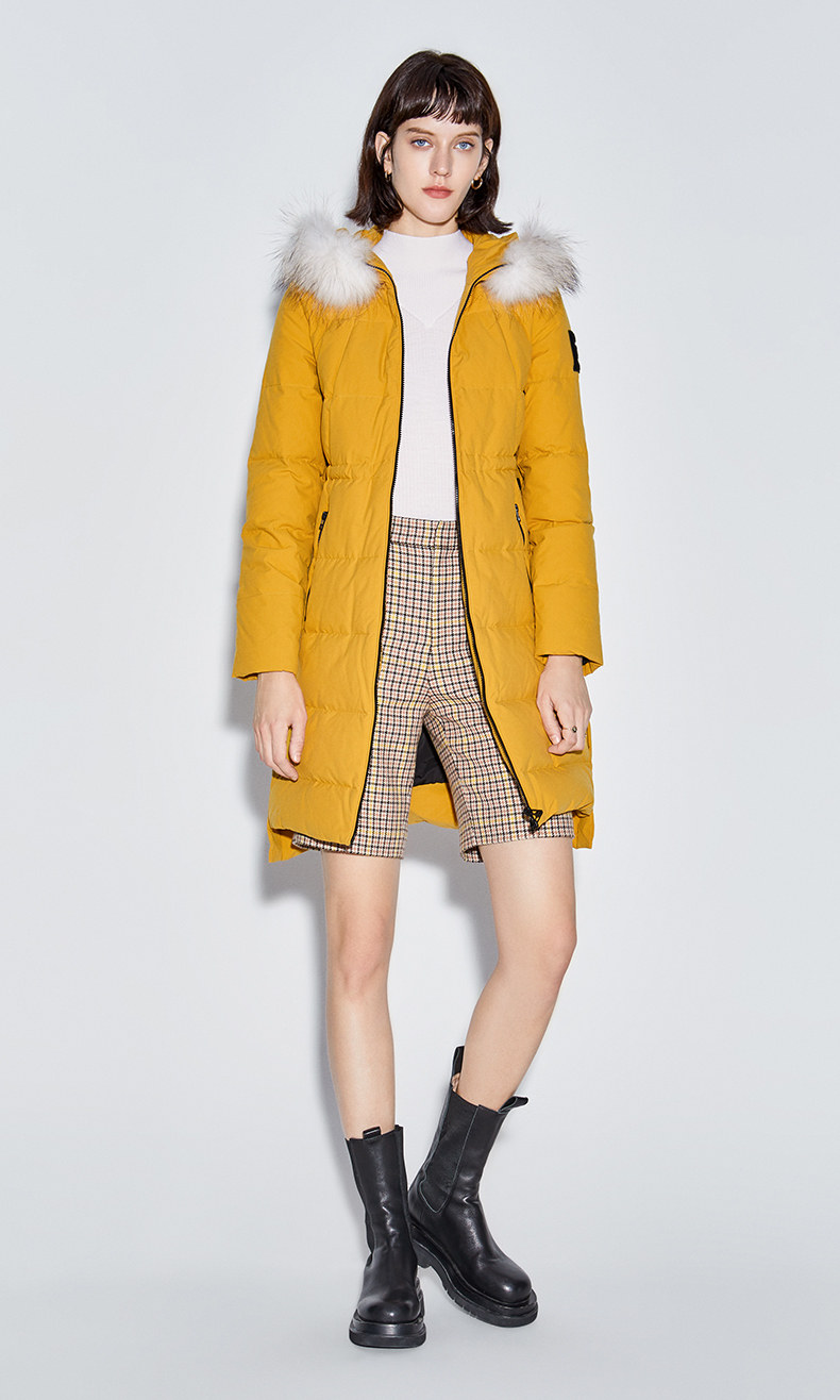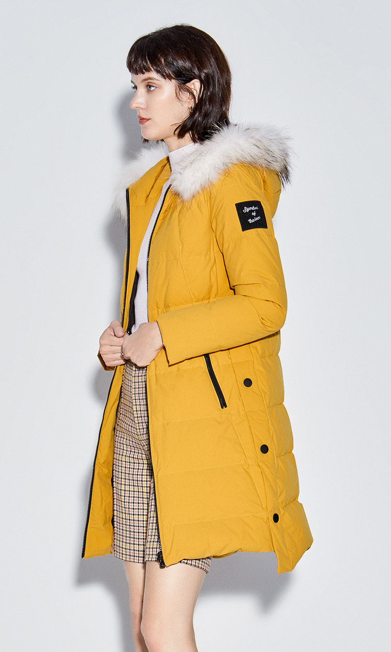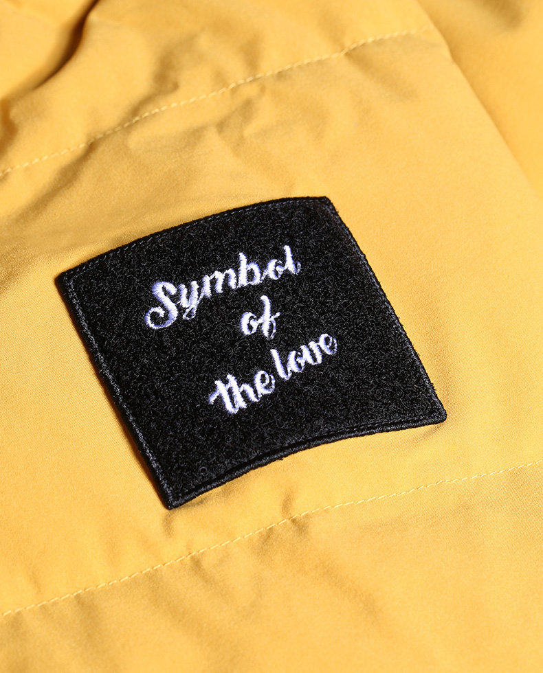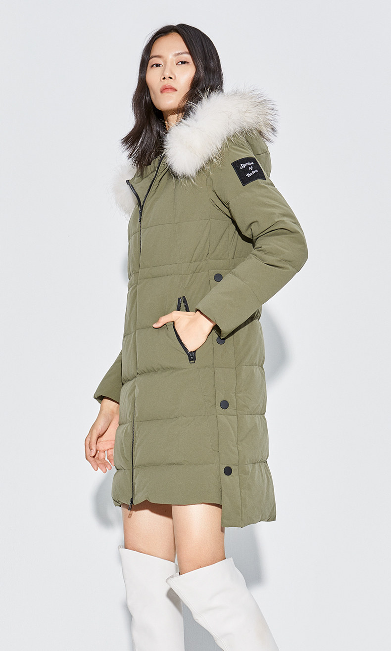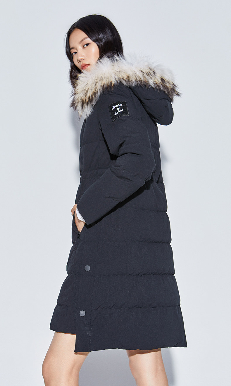 Наполнитель с высоким содержанием серого утиного пуха, технология бамбукового стегания добавлены для уменьшения объема, а аппликации обогащают детали стиля. Пуховая вещь теплая, но модная.