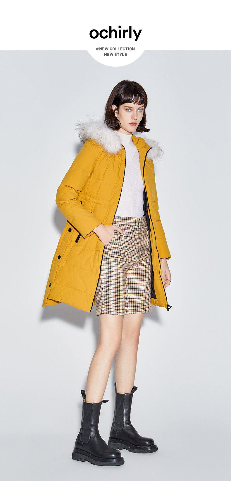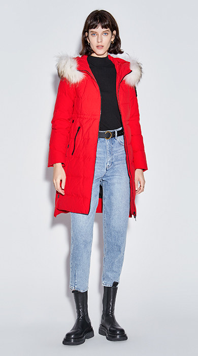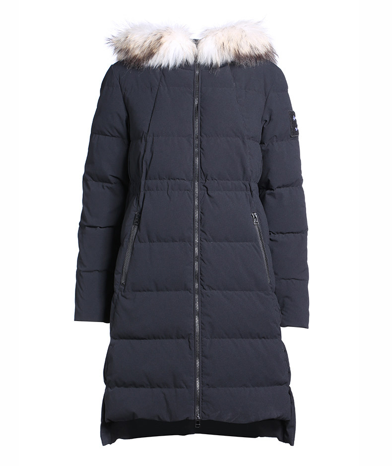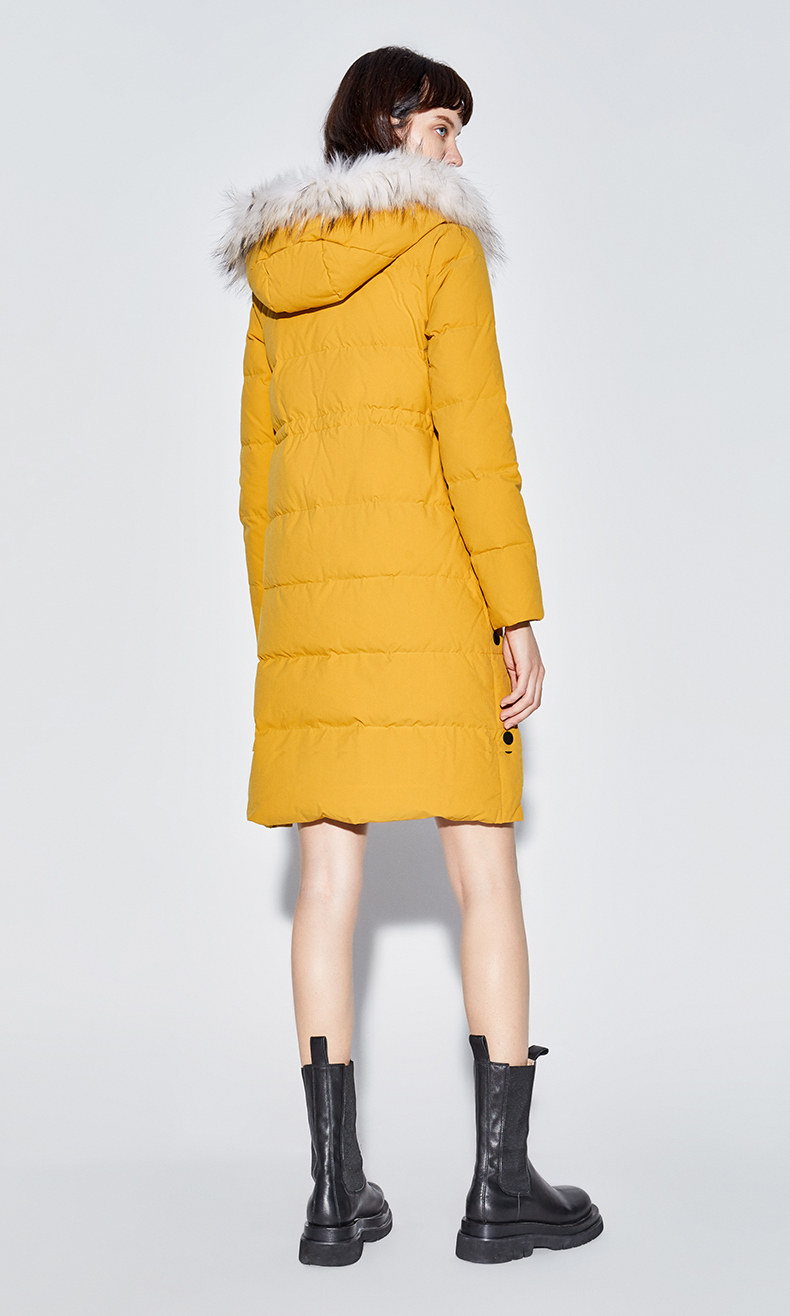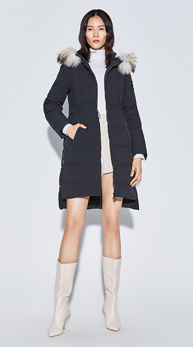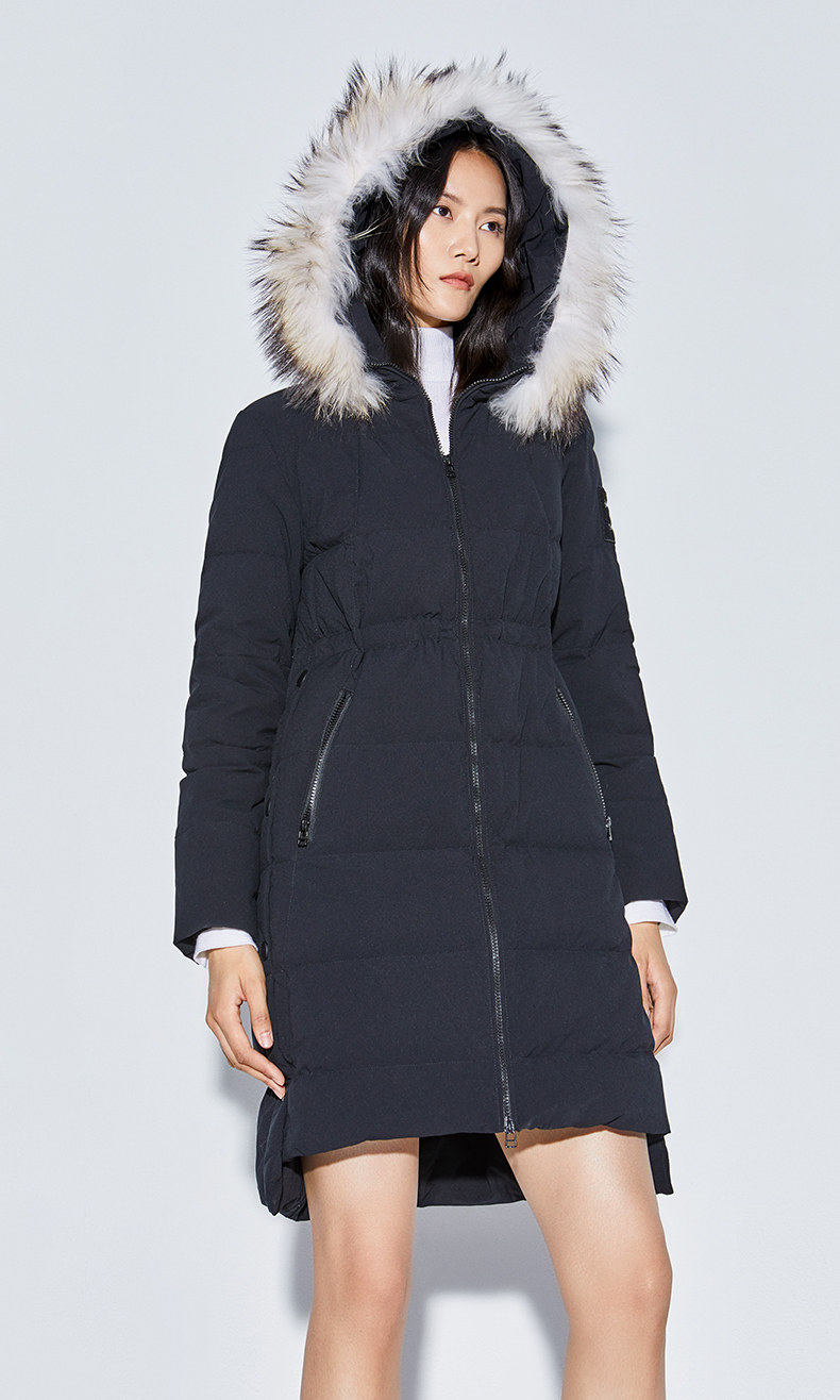 Наполнитель с высоким содержанием серого утиного пуха, технология бамбукового стегания добавлены для уменьшения объема, а аппликации обогащают детали стиля. Пуховая вещь теплая, но модная.