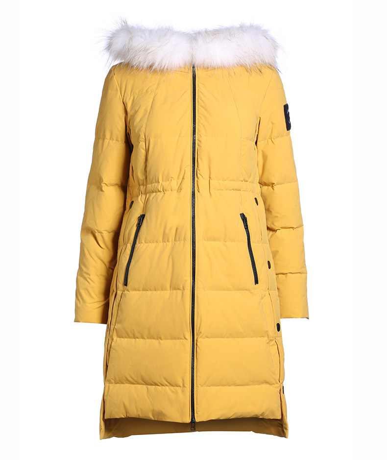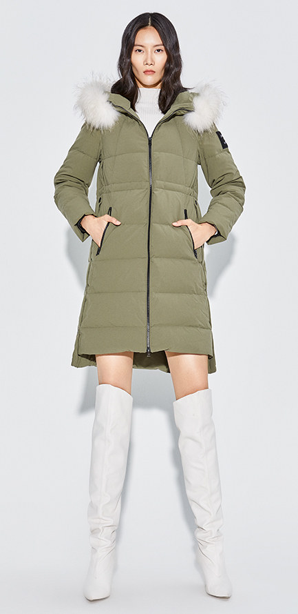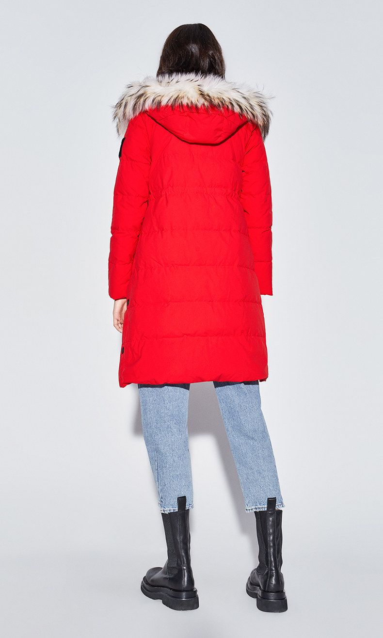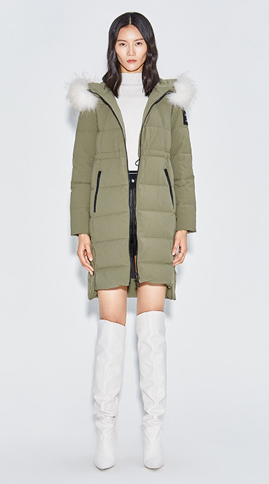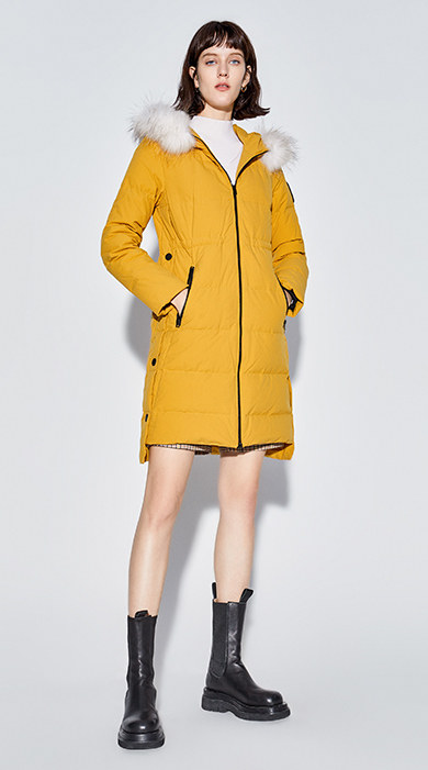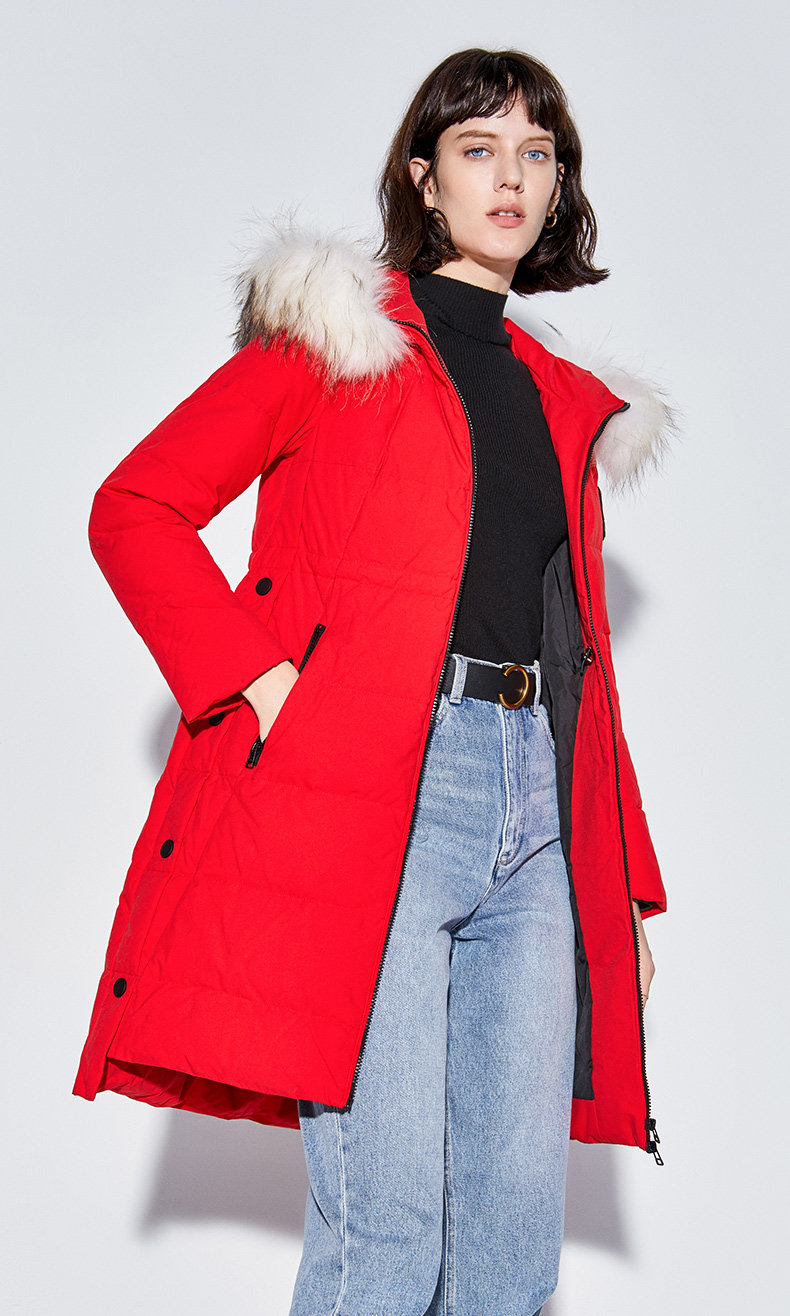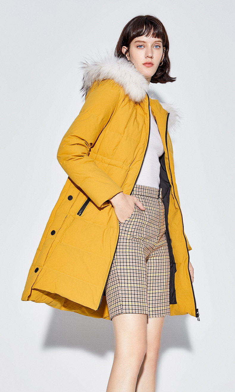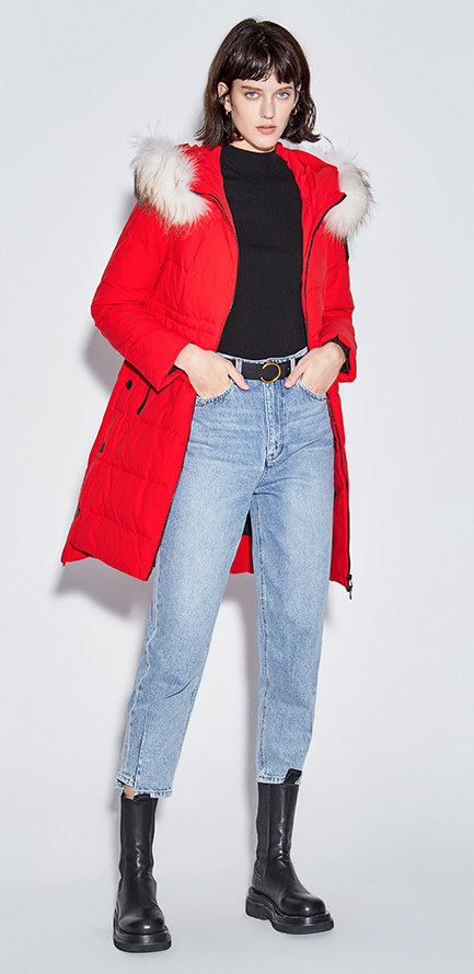 Украшение воротника из меха енота придает модный темперамент.