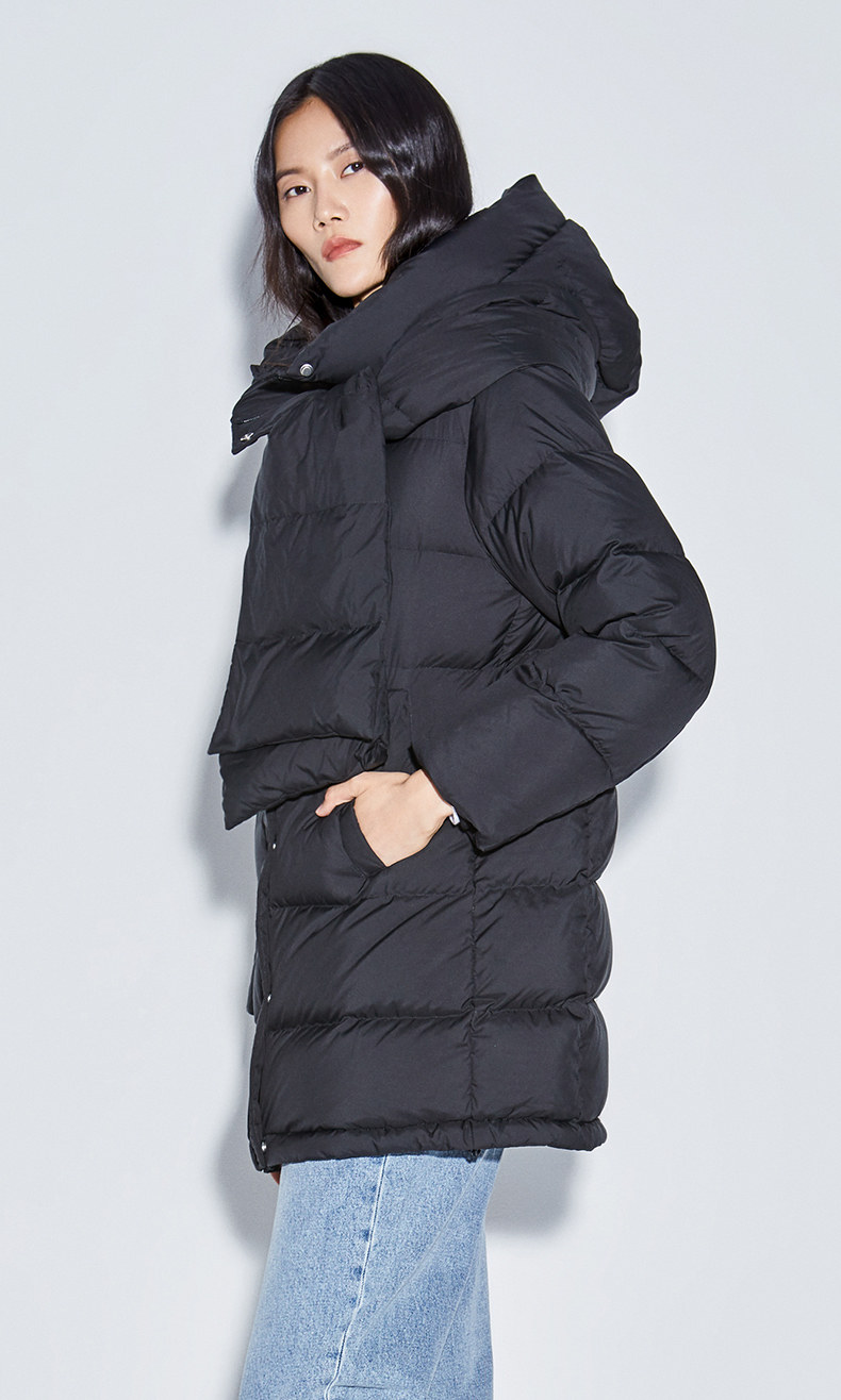 Доступны разнообразные популярные цвета, которые помогут избавиться от серости зимы.Он наполнен большим количеством белого утиного пуха, что делает его пушистым и комфортным, а также улучшает тепло. В сочетании с дизайном шарфа он обогащает стиль.