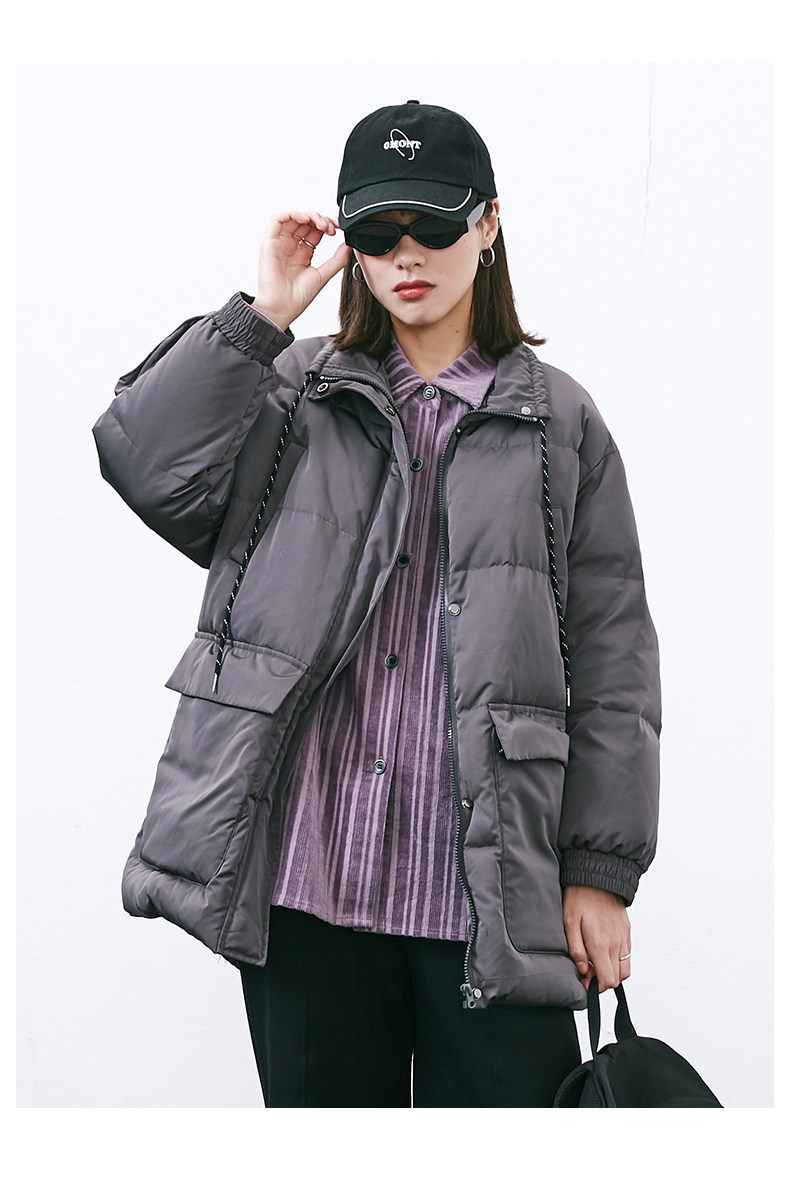 omont Ретро бархатный пуховик, куртка, свободный крой, на шнурках, утиный пух, 2020