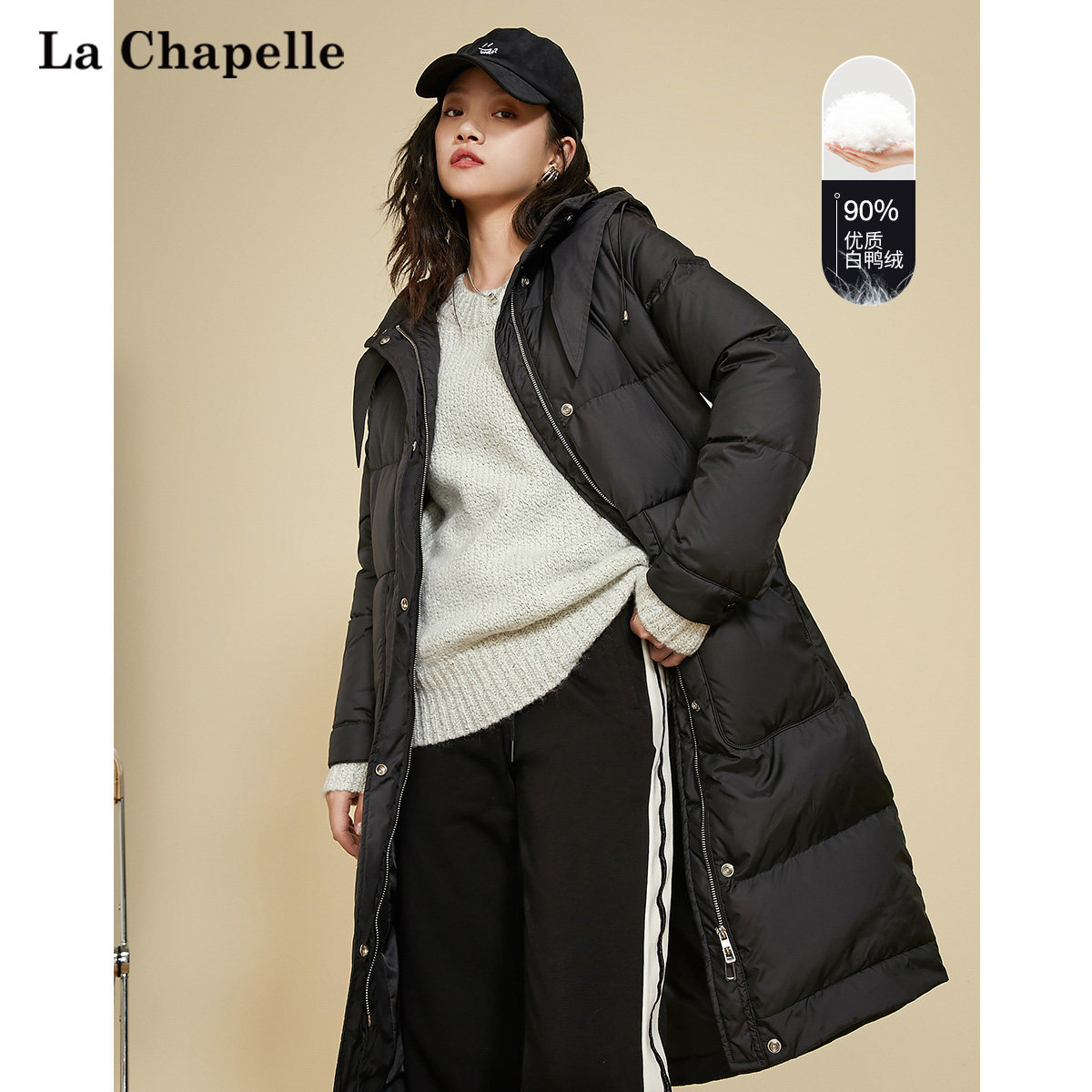Кролик с капюшоном, длинный пуховик, куртка с пухом, коллекция 2021, новая коллекция, средней длины, хлеб