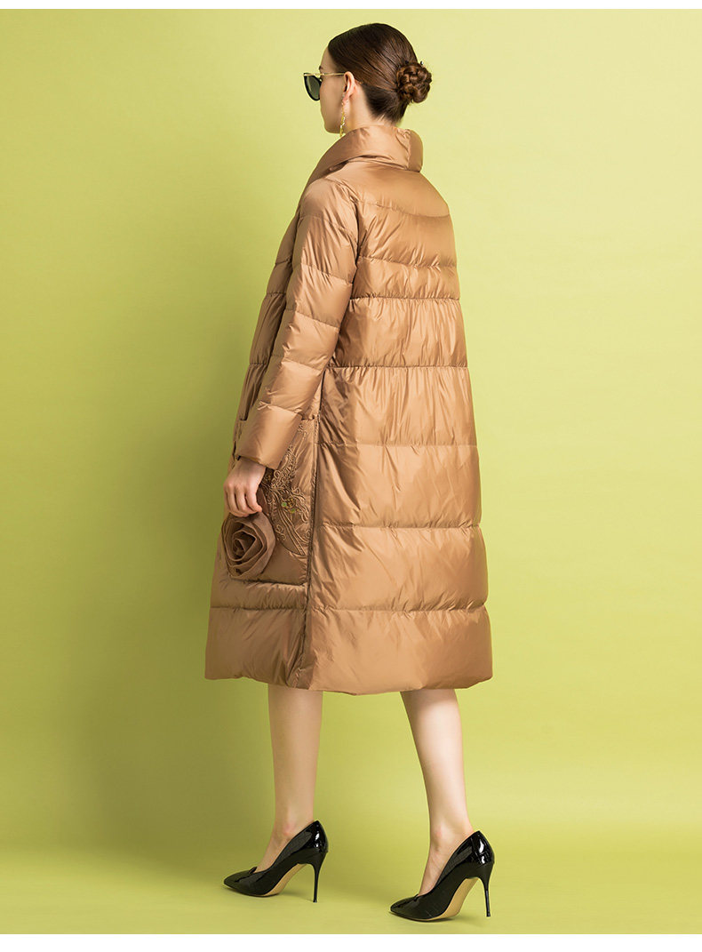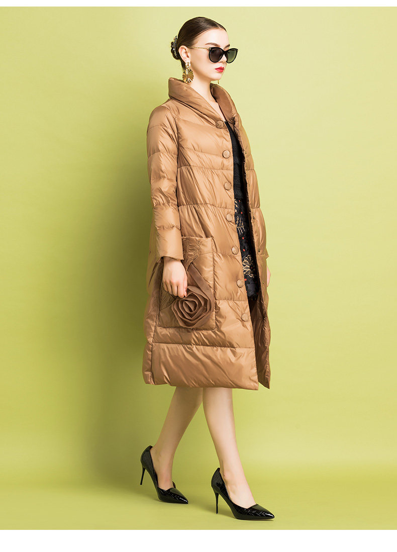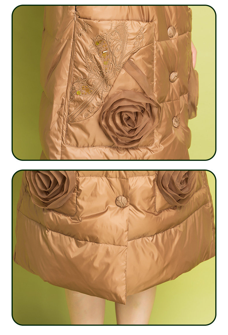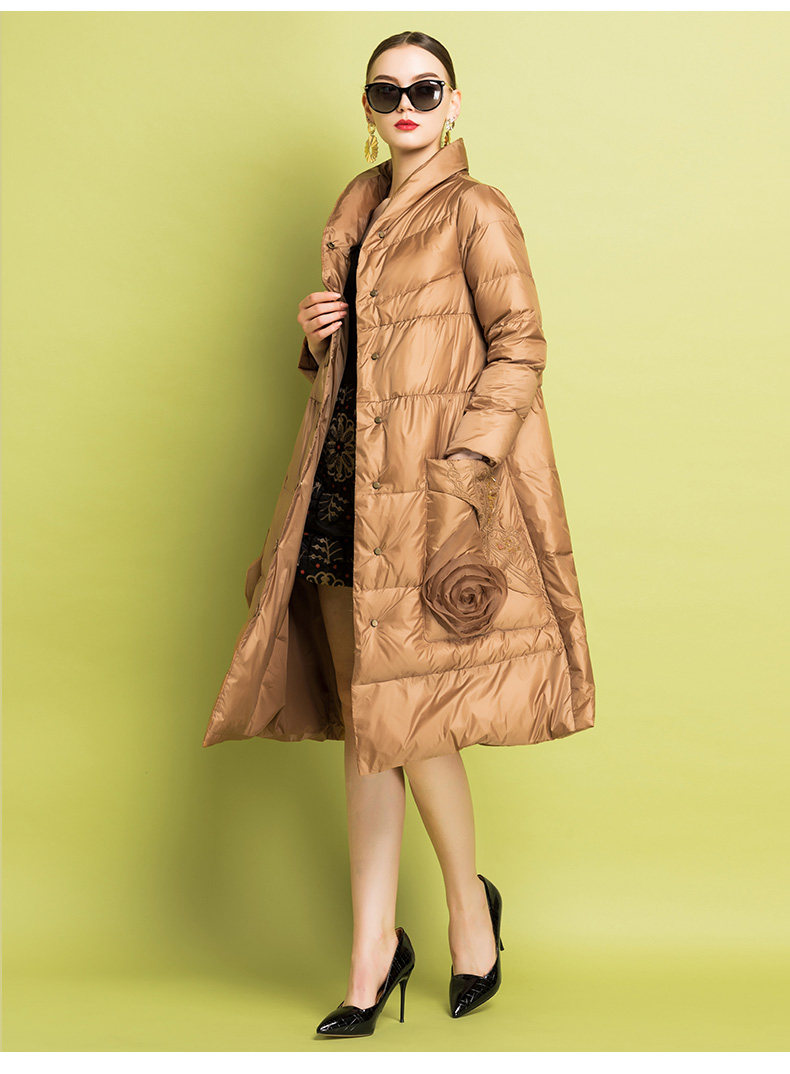 Бархатный пуховик, легкий и тонкий удерживающий тепло плащ, с вышивкой, утиный пух