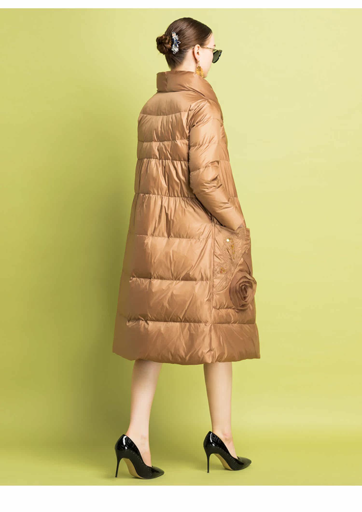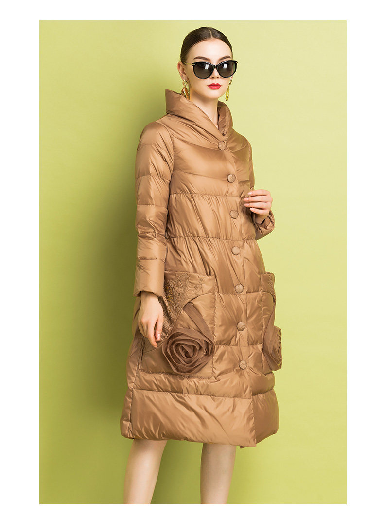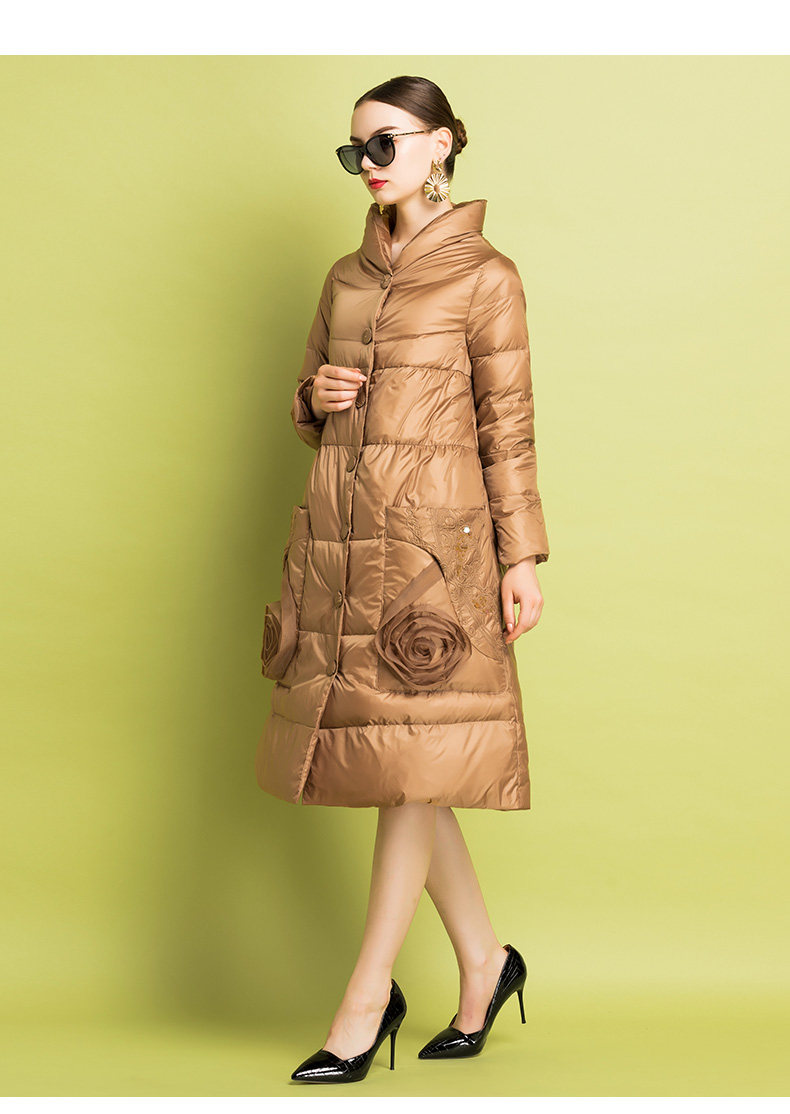 Бархатный пуховик, легкий и тонкий удерживающий тепло плащ, с вышивкой, утиный пух