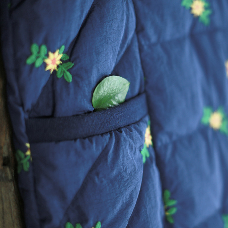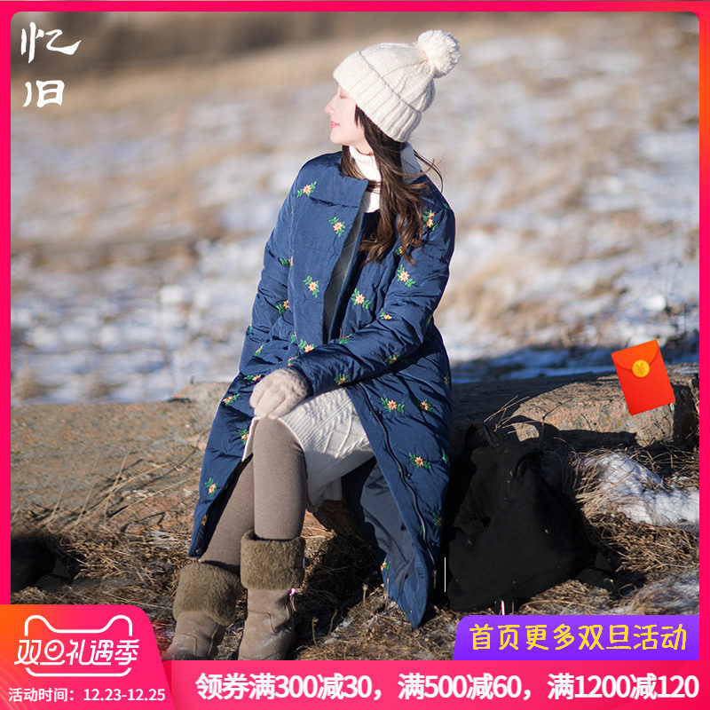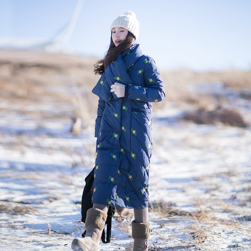 Длинный пуховик, бархатная куртка, с вышивкой, средней длины, коллекция 2021, утиный пух