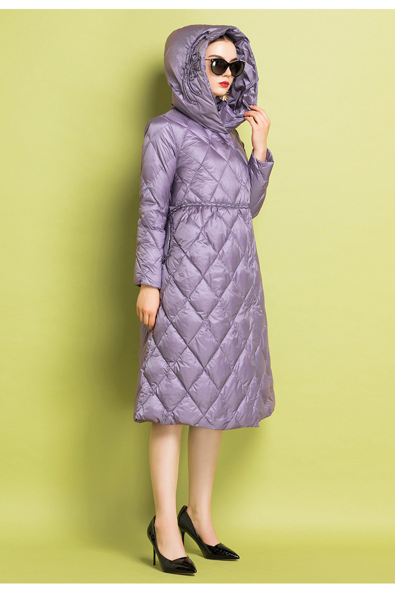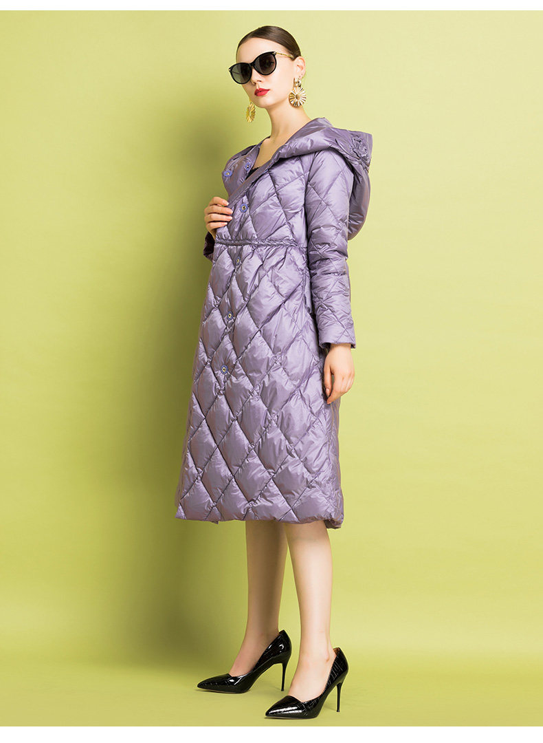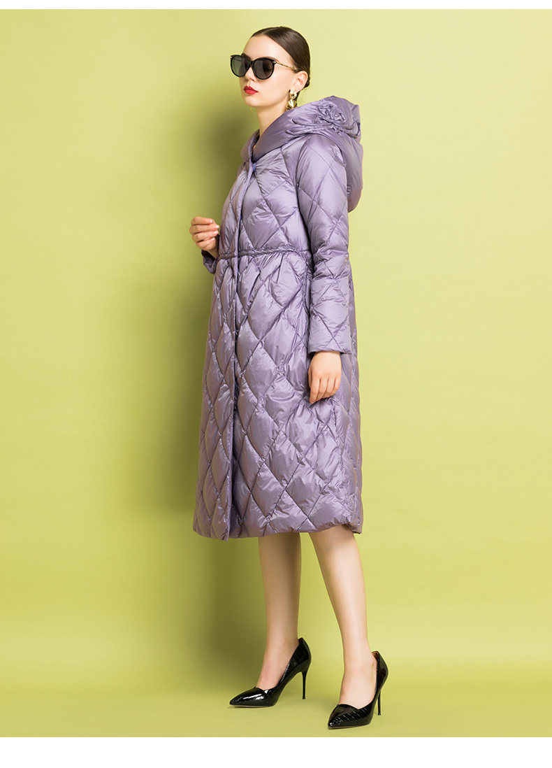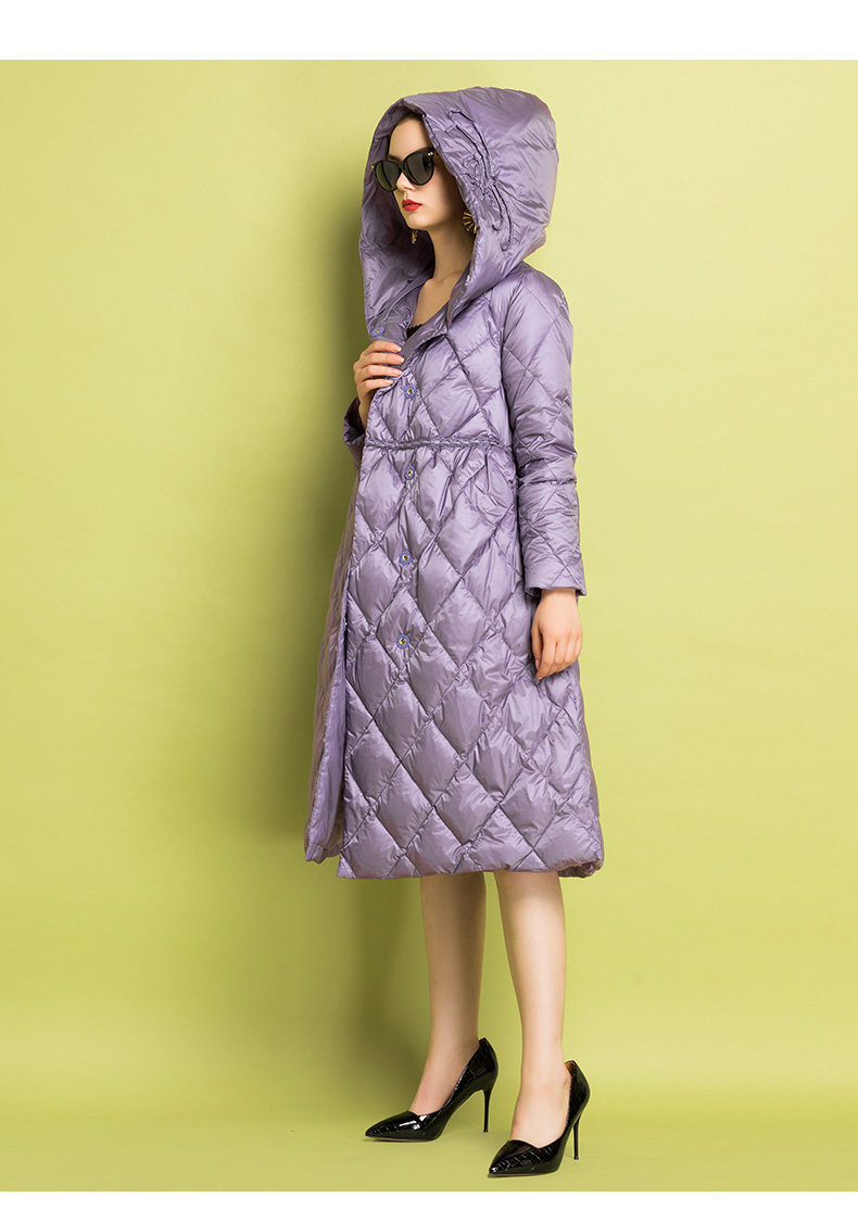 Приталенный пуховик, бархатный легкий и тонкий удерживающий тепло плащ, высокая талия, утиный пух