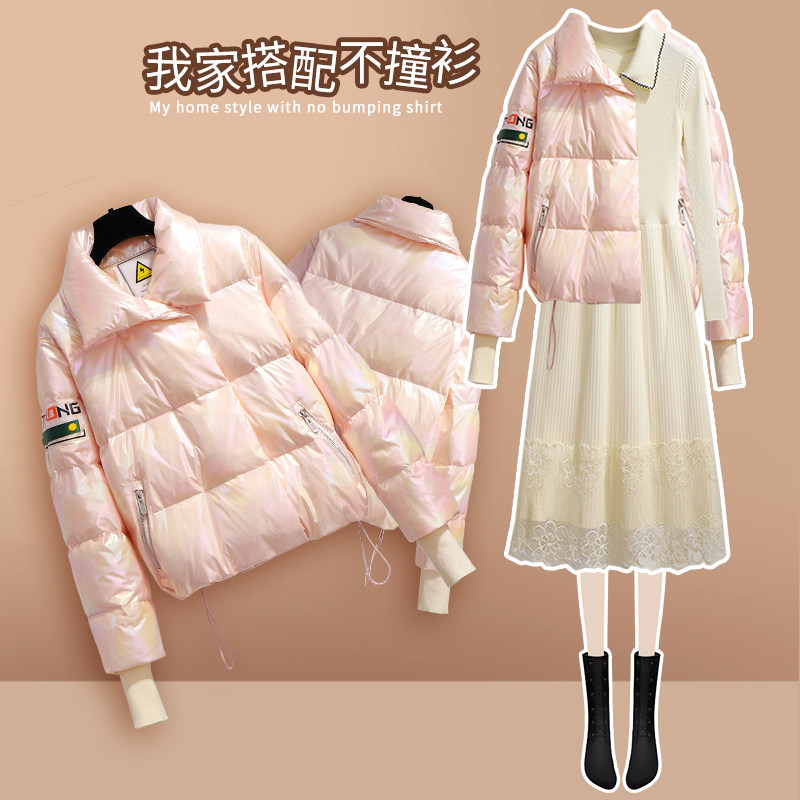 | Цвет: | Розовый пуховик, Бежевый свитер |