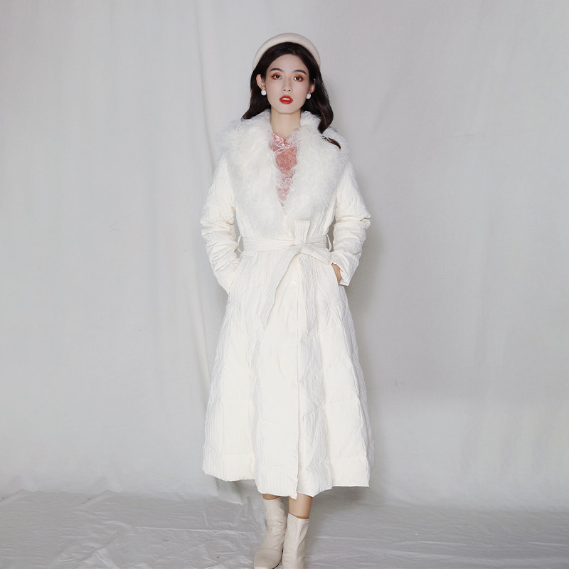 Элитная куртка, светлый демисезонный зимний длинный пуховик, гусиный пух, 2021 года, увеличенная толщина, средней длины