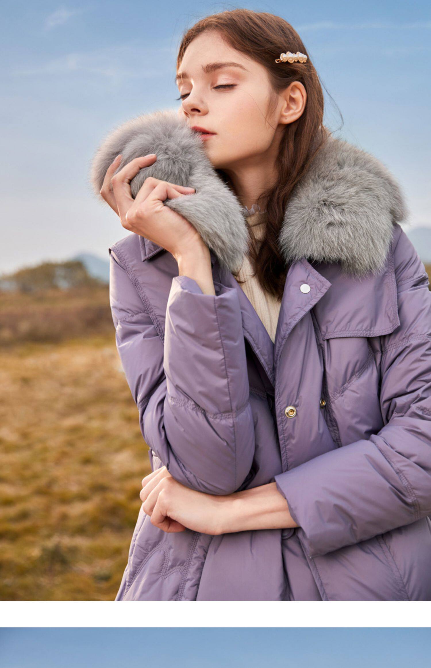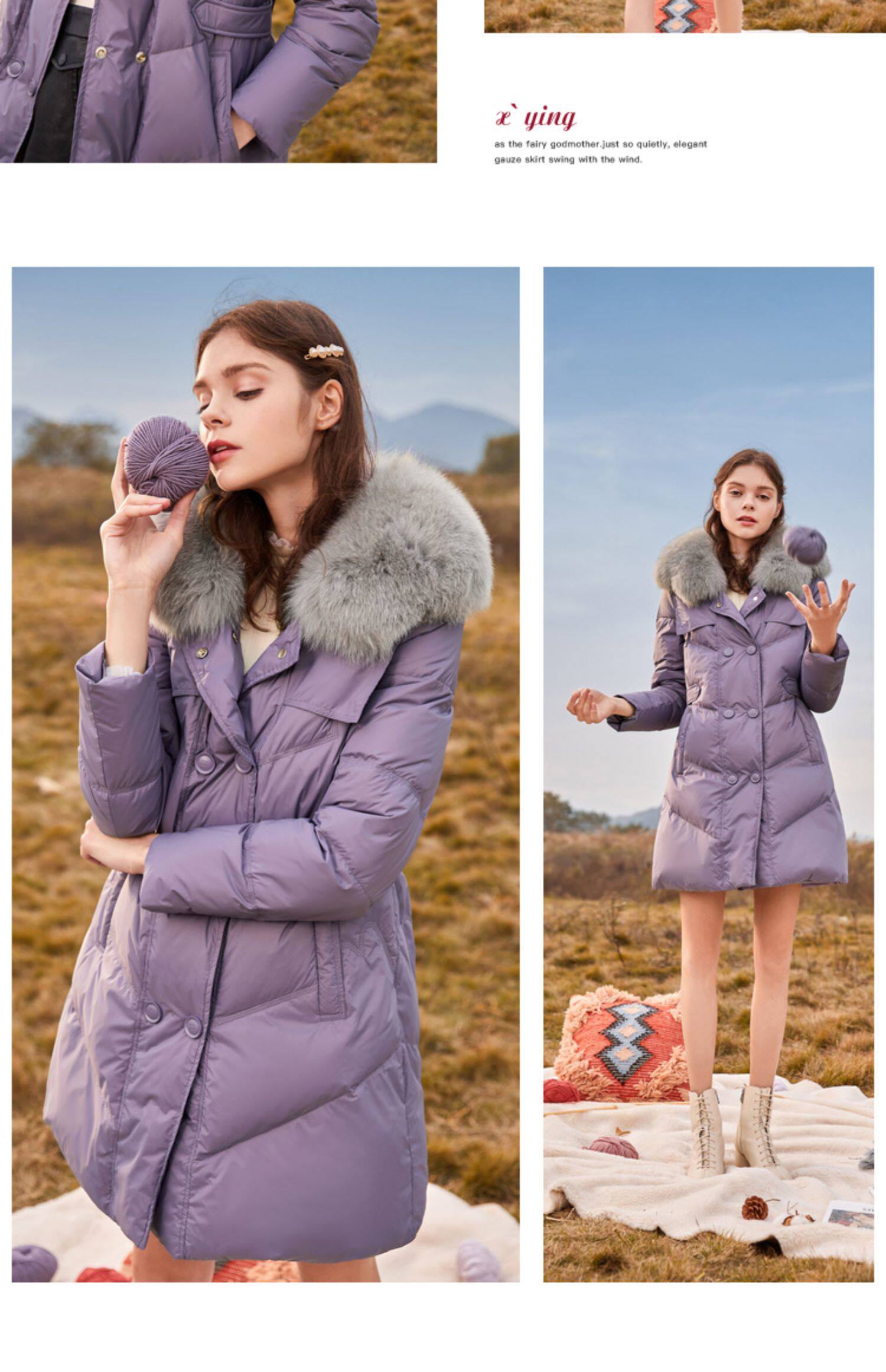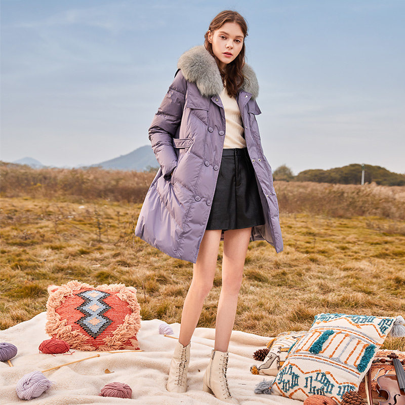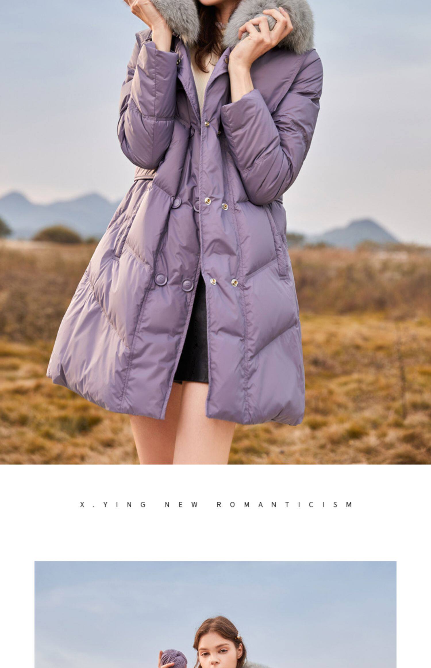 香影 Сиреневый зимний пуховик, бархатный корсет, куртка, 2021 года, утиный пух