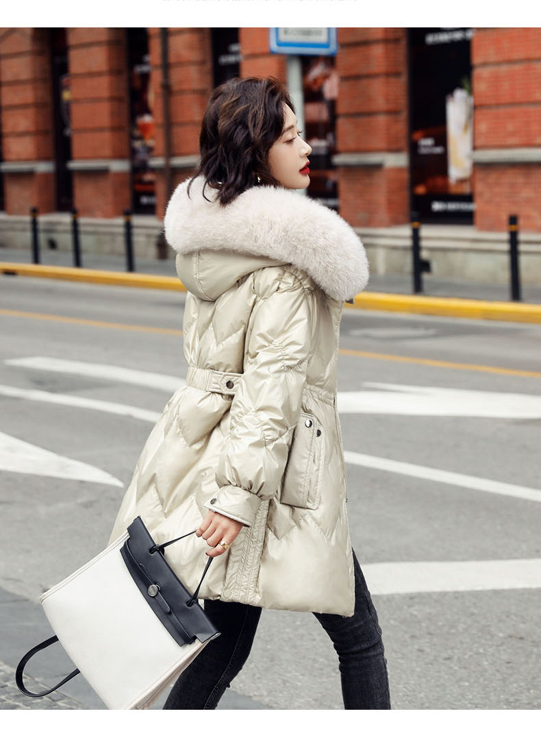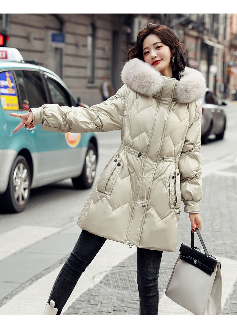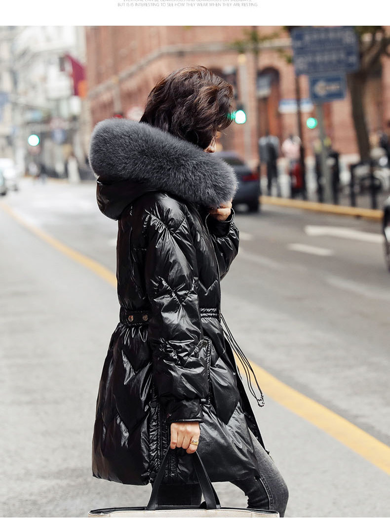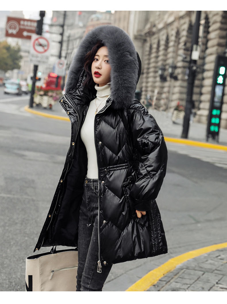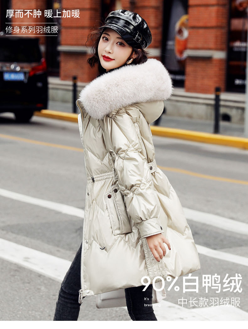 Глянцевый длинный пуховик, бархатный корсет, по фигуре, облегающий крой, средней длины, 2020 года, утиный пух