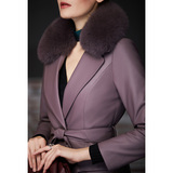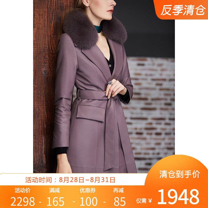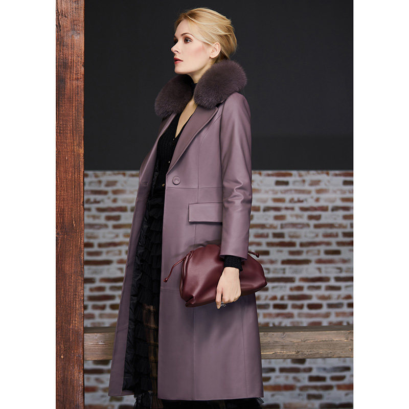 Элегантная женская длинная куртка, пуховик, облегающий крой, средней длины, из натуральной кожи
