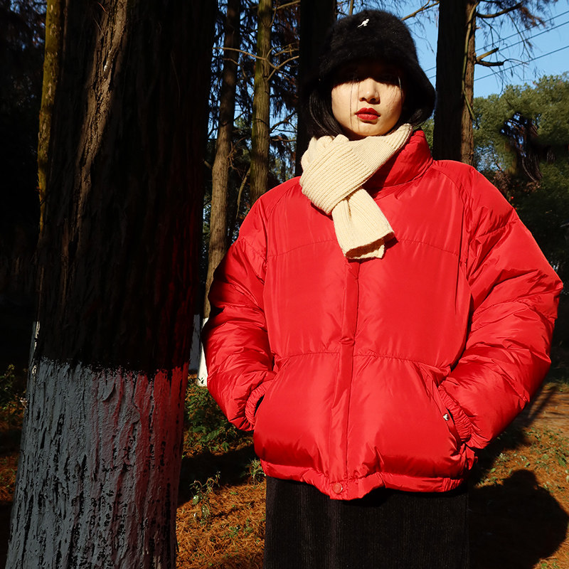 Бархатный красный пуховик, утиный пух, подходит для подростков, увеличенная толщина