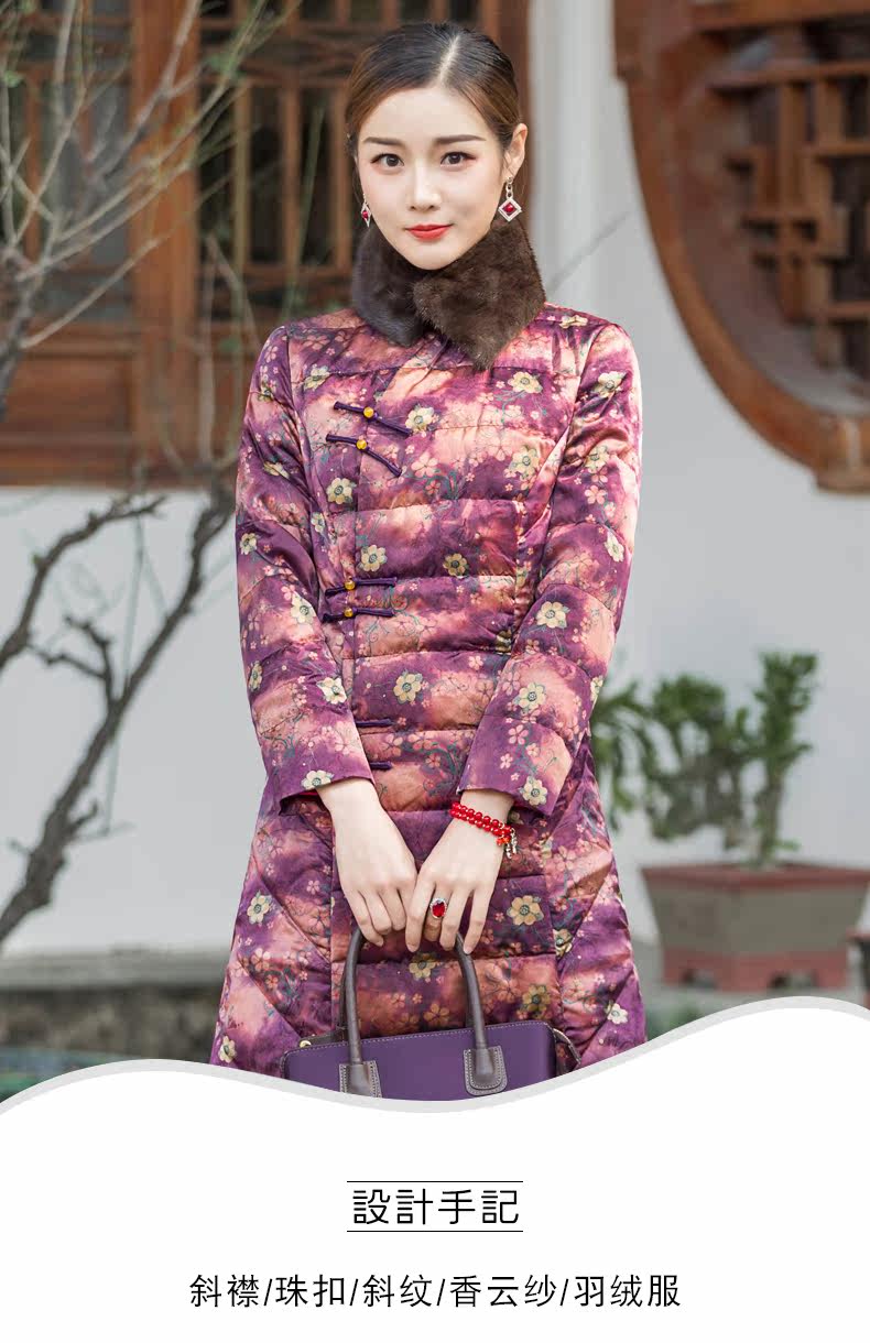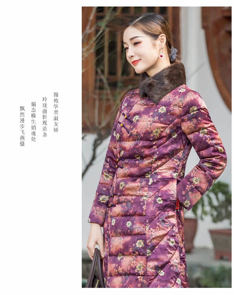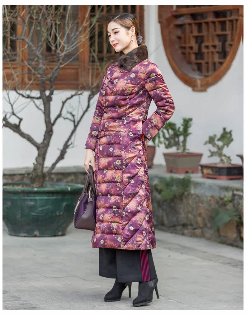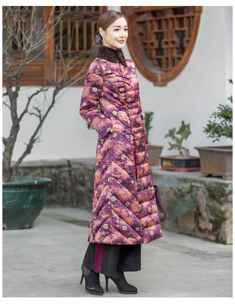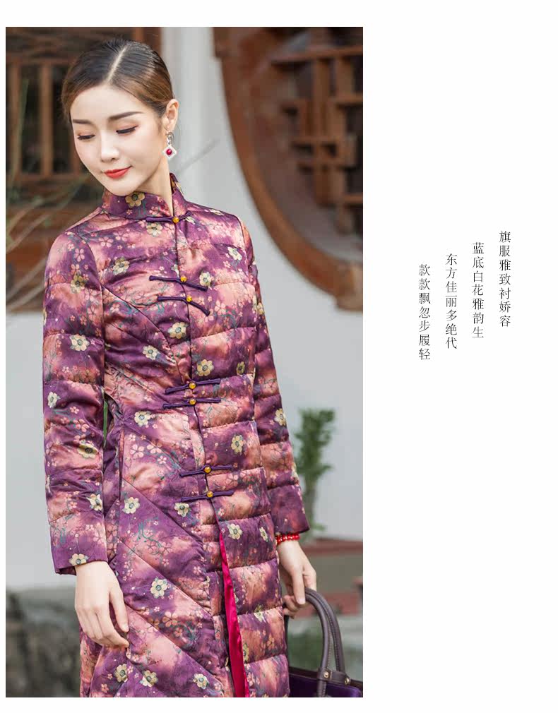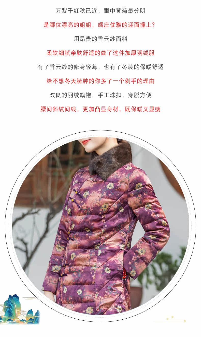 华族经典 Шелковый элитный пуховик, легкая и тонкая приталенная длинная куртка, средней длины